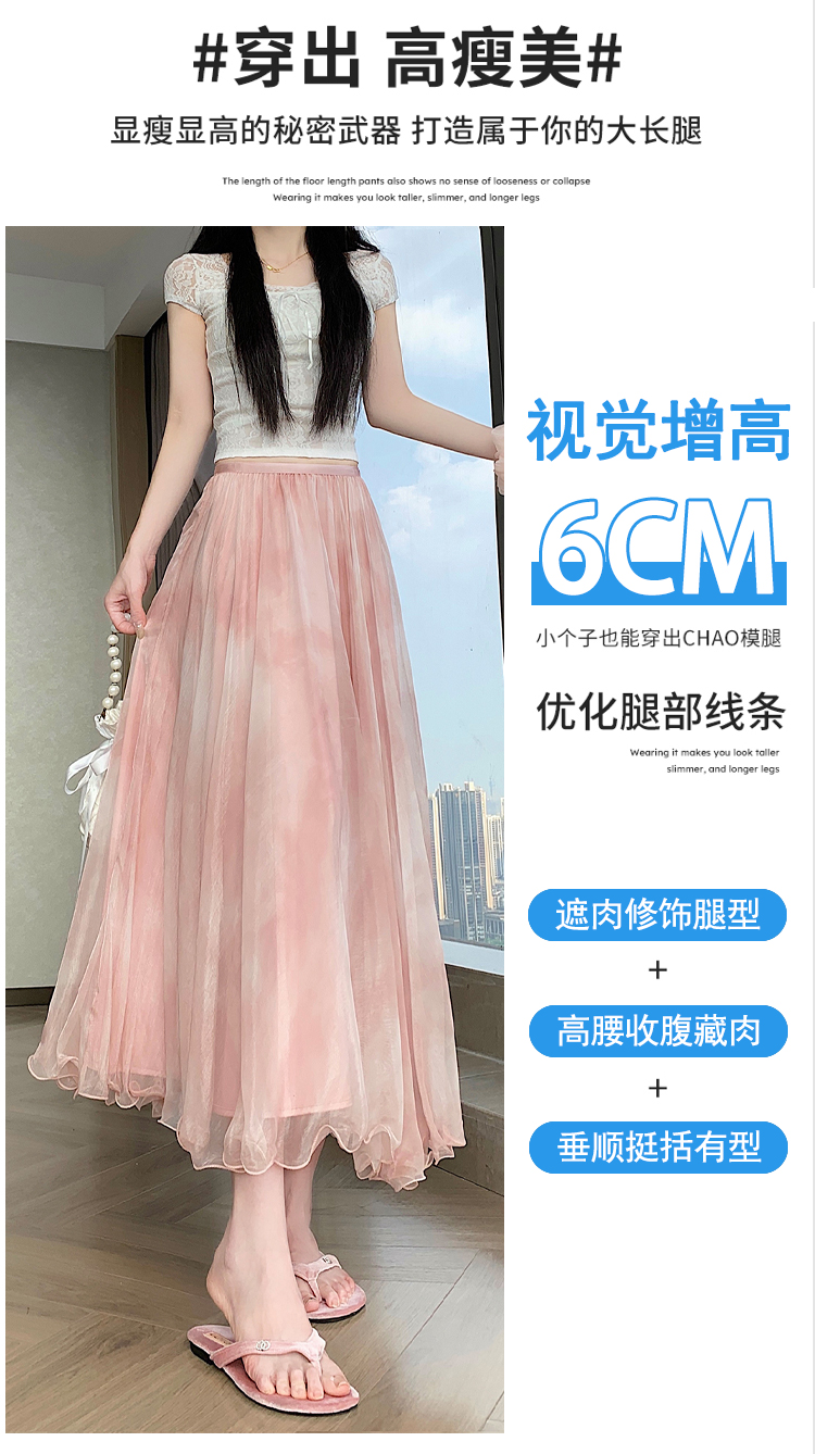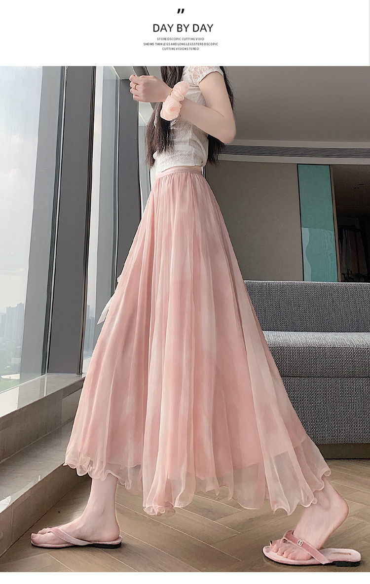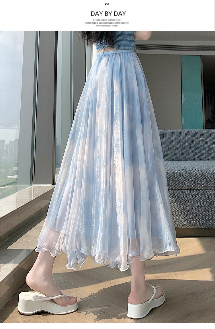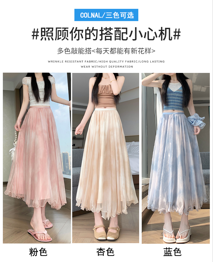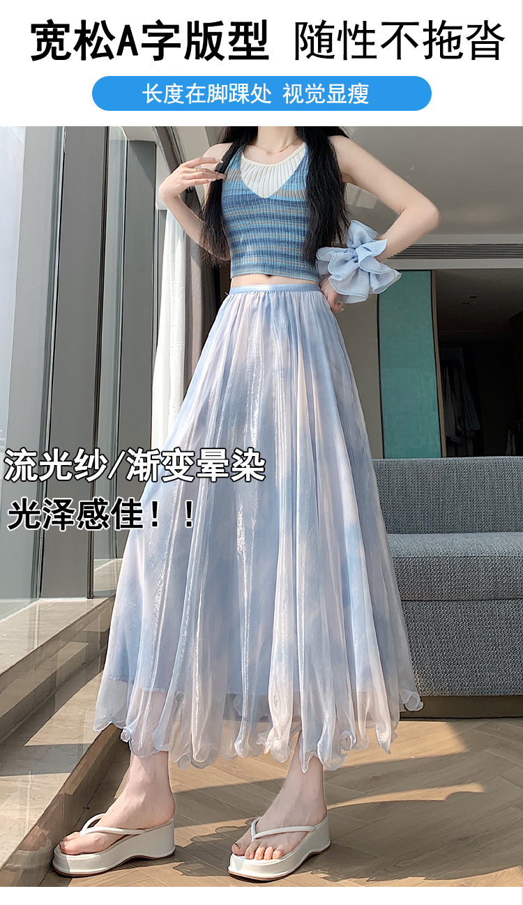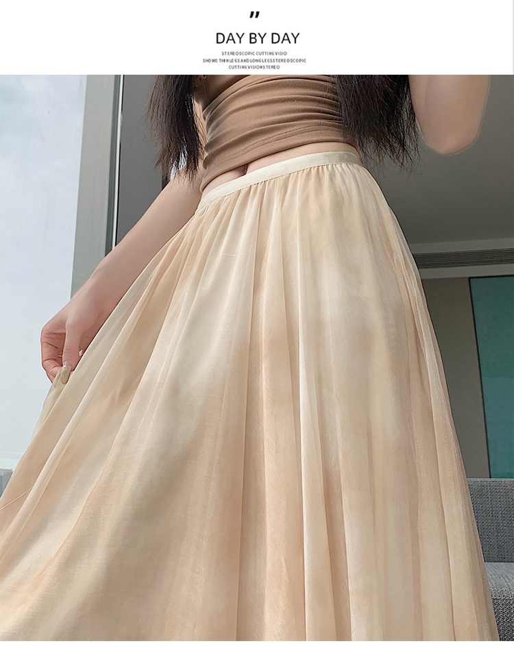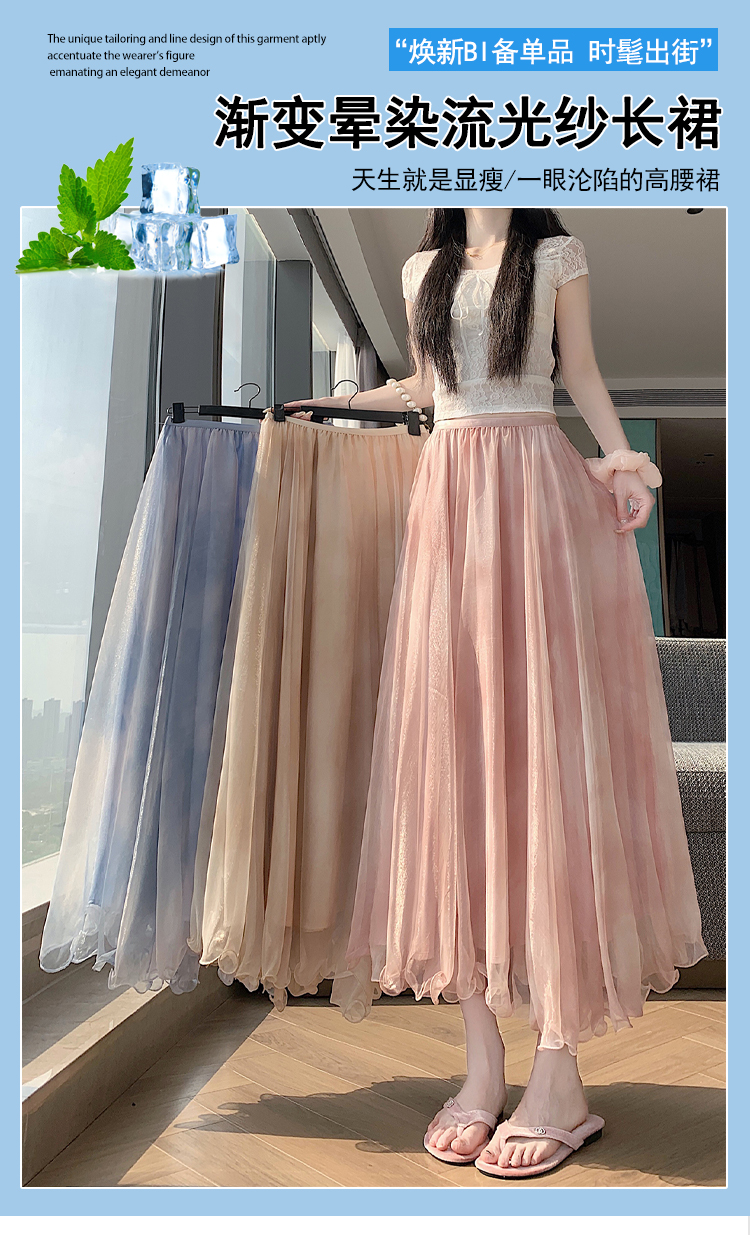 실사 프랑스식 헤일로 염색 깃발 실 롱 스커트 여성 여름 새로운 루즈핏 슬림해 보이는 반신 스커트 도루 가을 센스 플리츠 한 마디