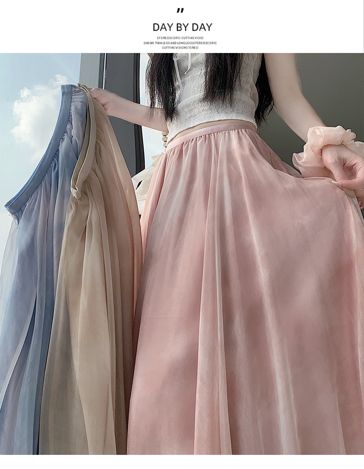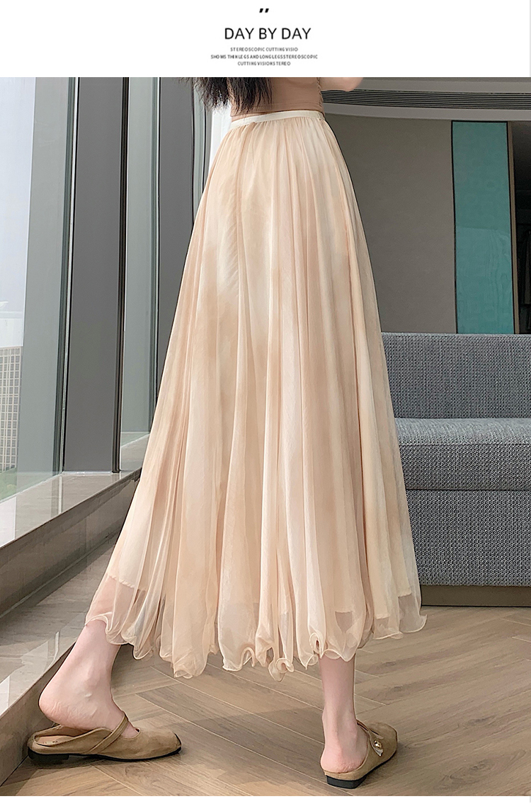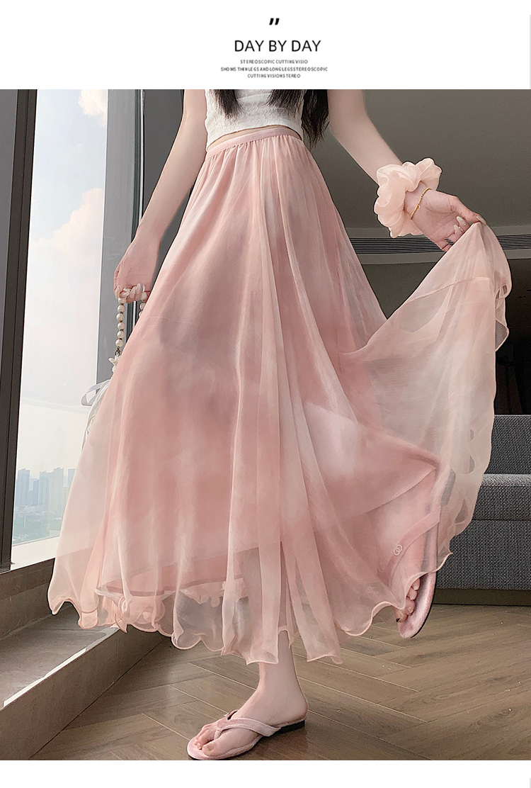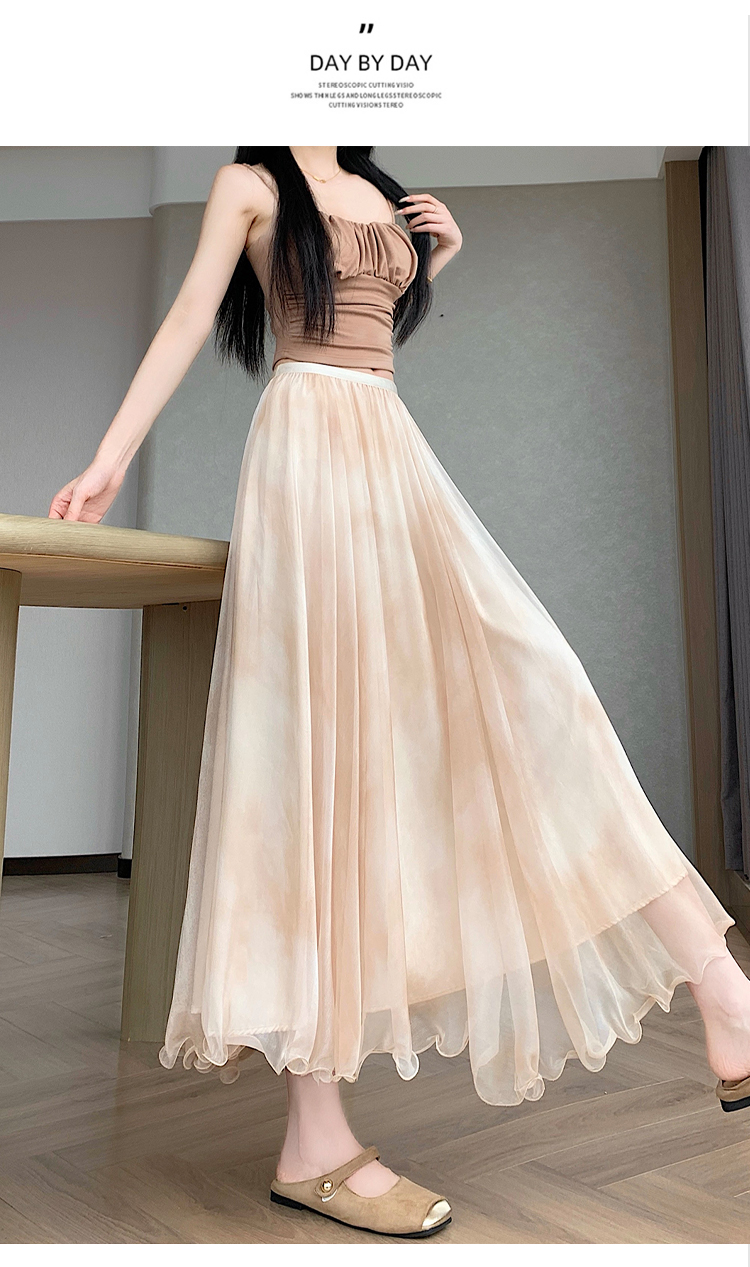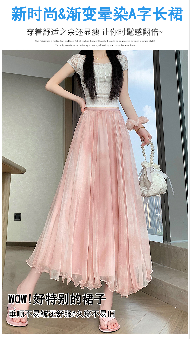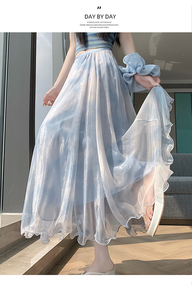 실사 프랑스식 헤일로 염색 깃발 실 롱 스커트 여성 여름 새로운 루즈핏 슬림해 보이는 반신 스커트 도루 가을 센스 플리츠 한 마디