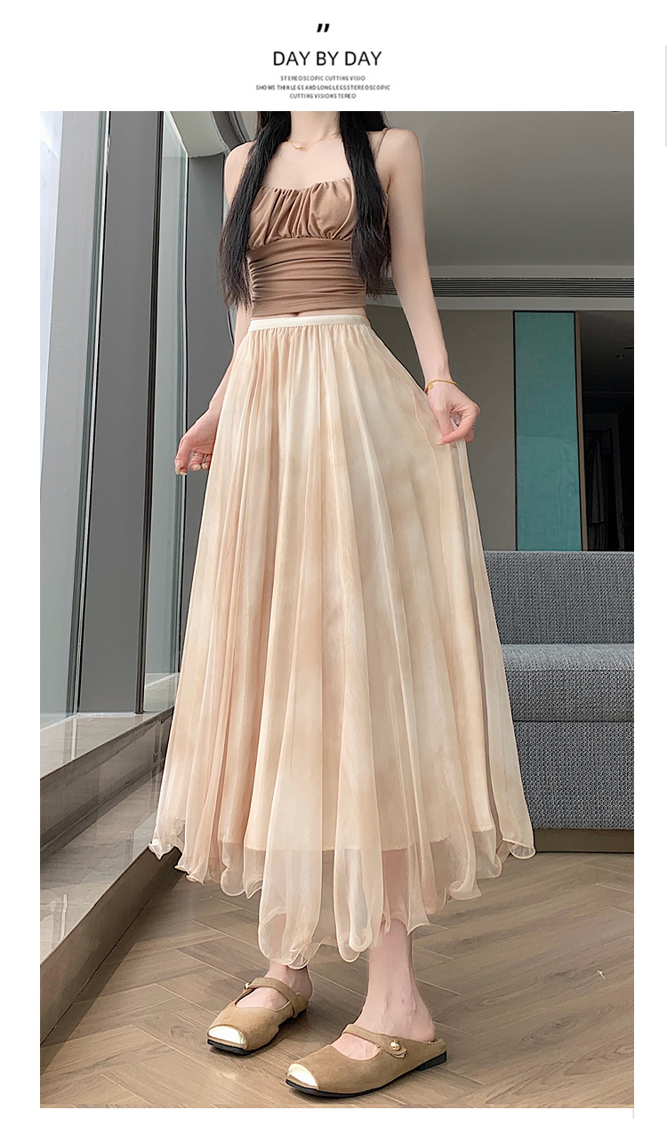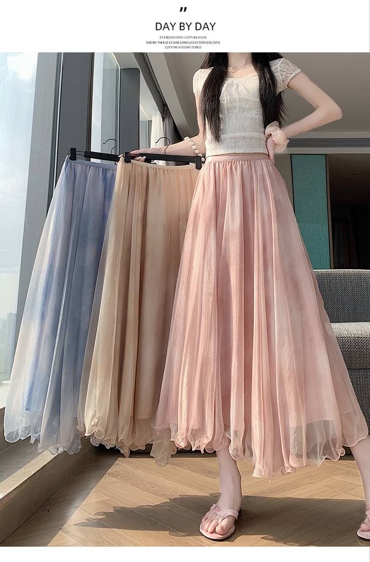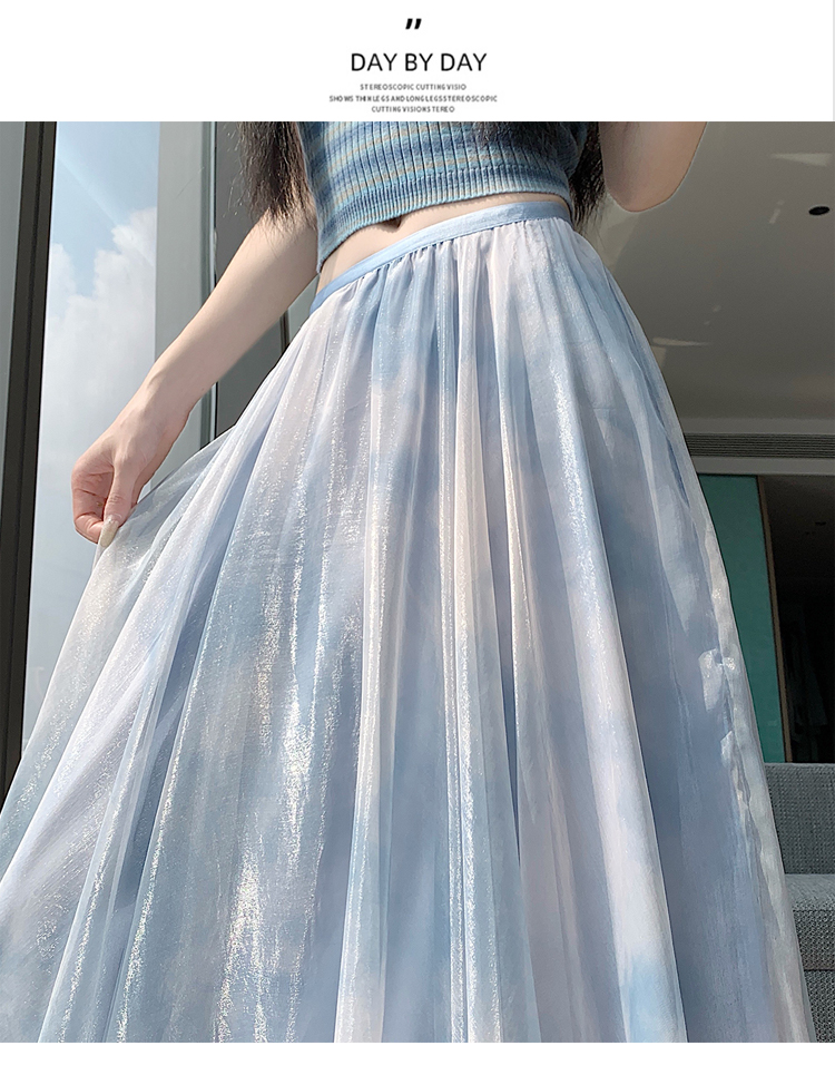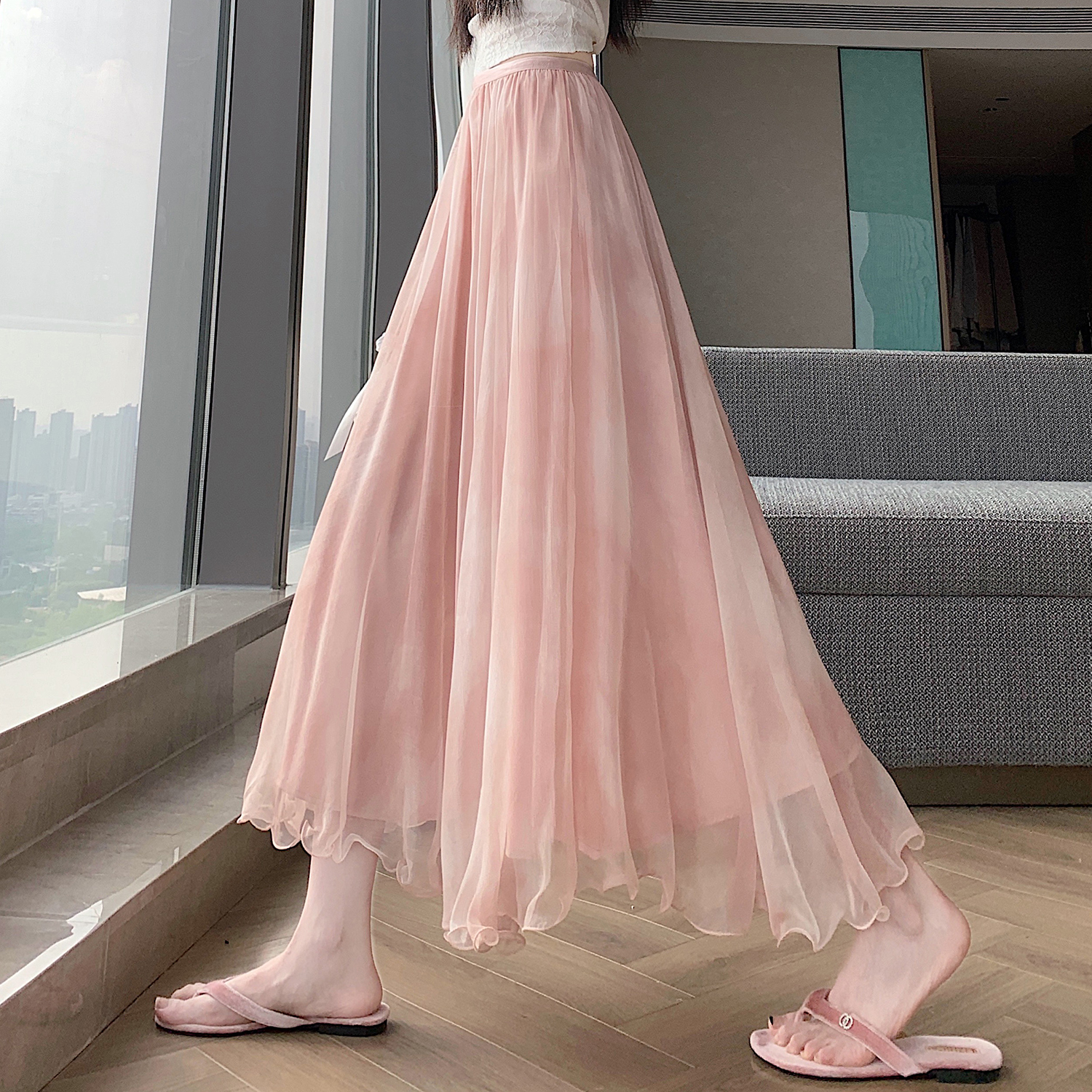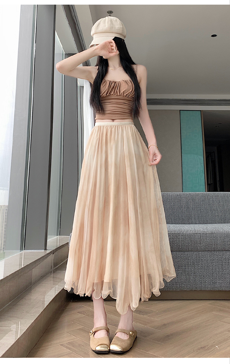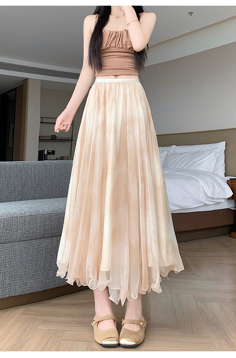 실사 프랑스식 헤일로 염색 깃발 실 롱 스커트 여성 여름 새로운 루즈핏 슬림해 보이는 반신 스커트 도루 가을 센스 플리츠 한 마디