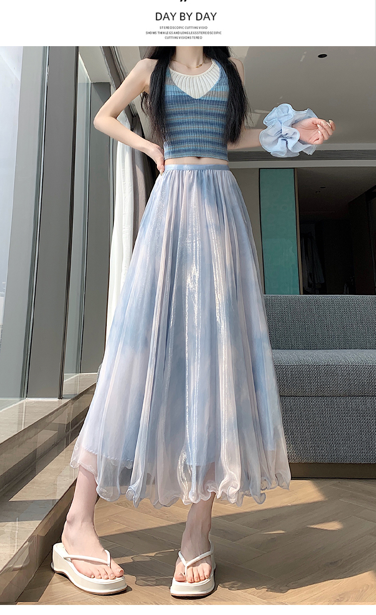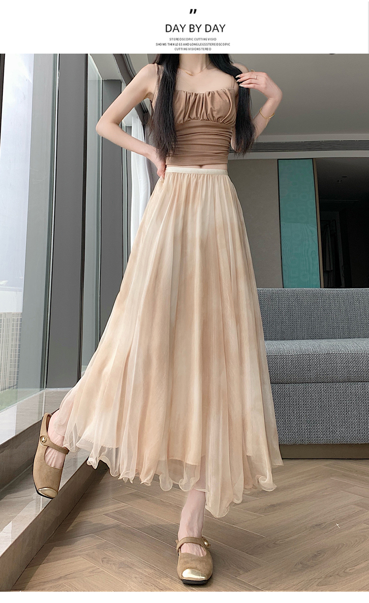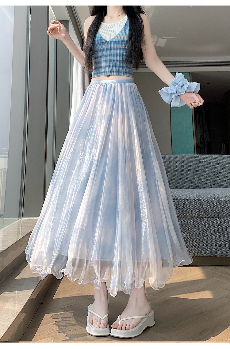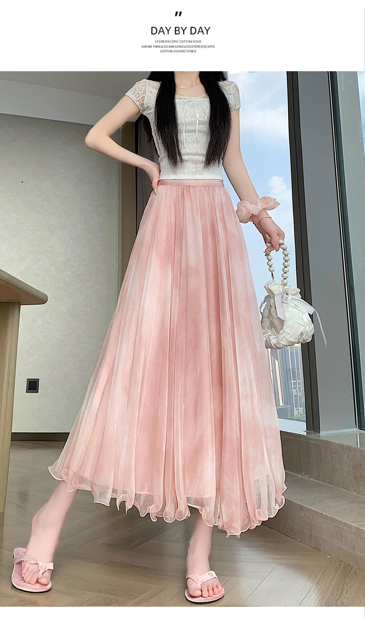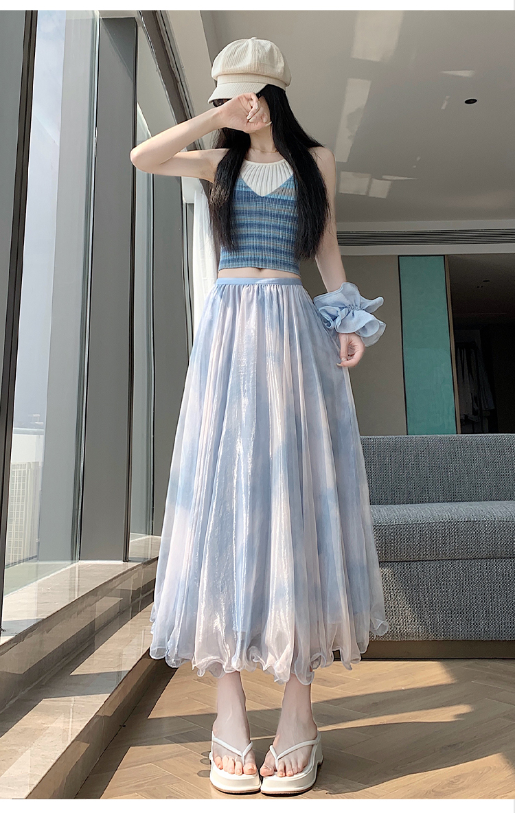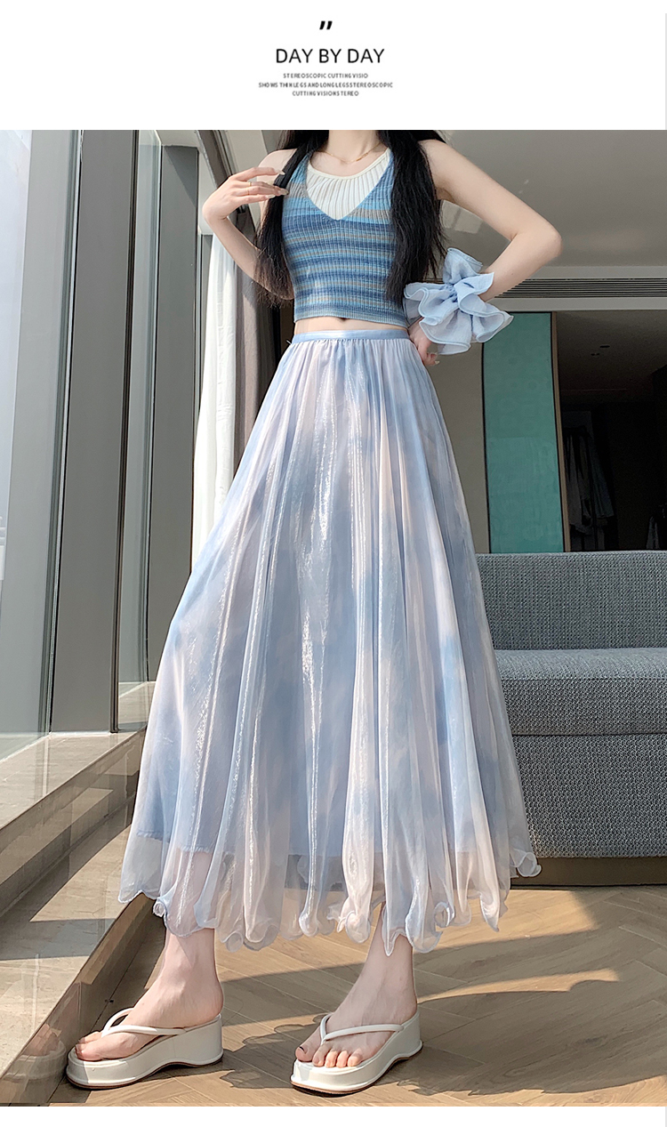 실사 프랑스식 헤일로 염색 깃발 실 롱 스커트 여성 여름 새로운 루즈핏 슬림해 보이는 반신 스커트 도루 가을 센스 플리츠 한 마디