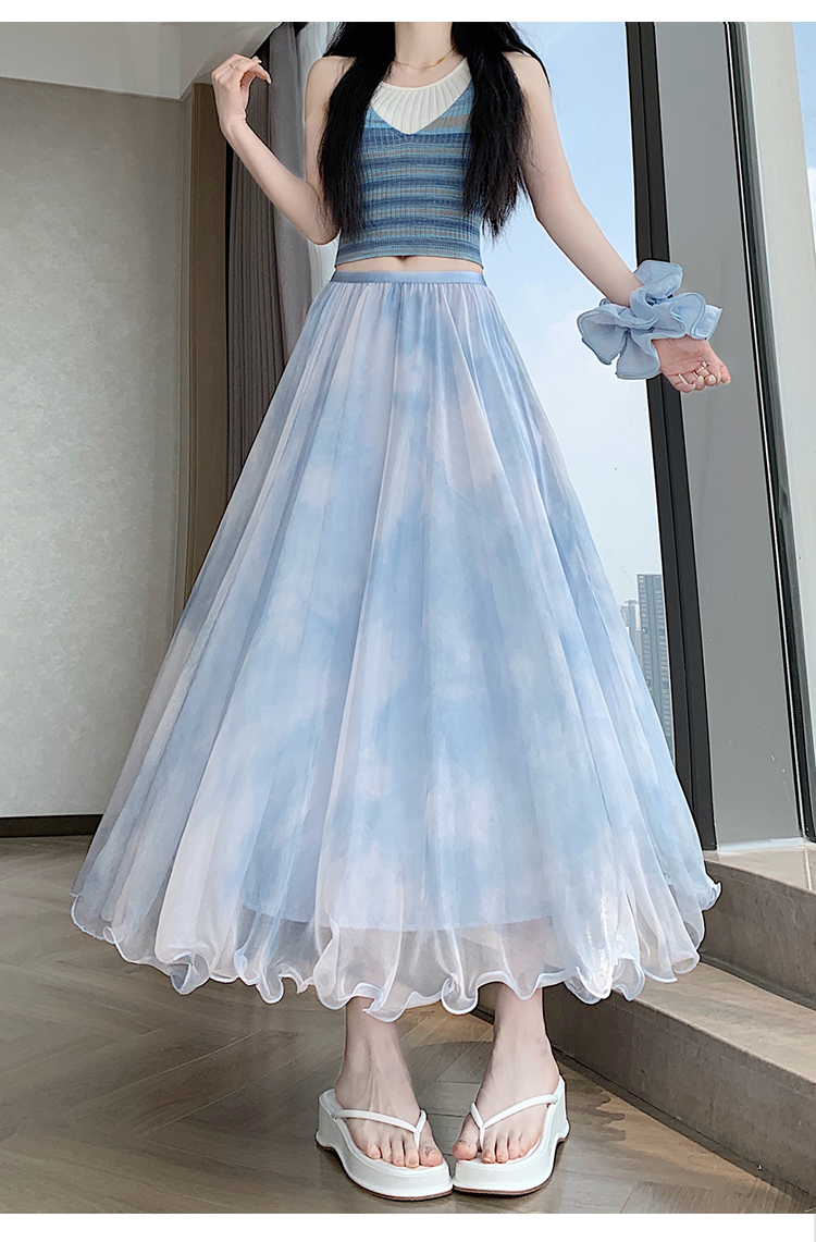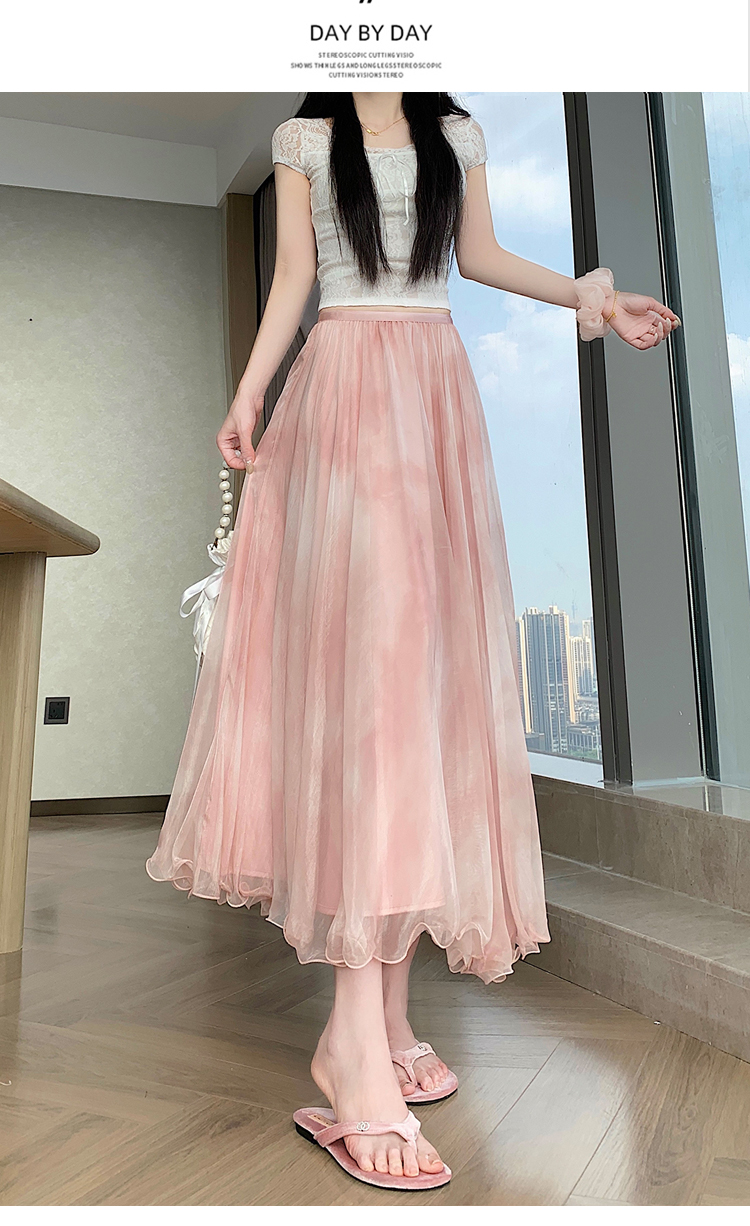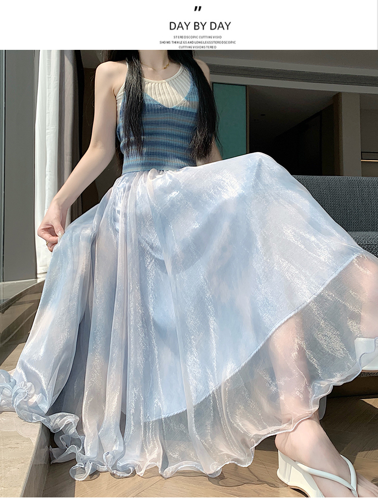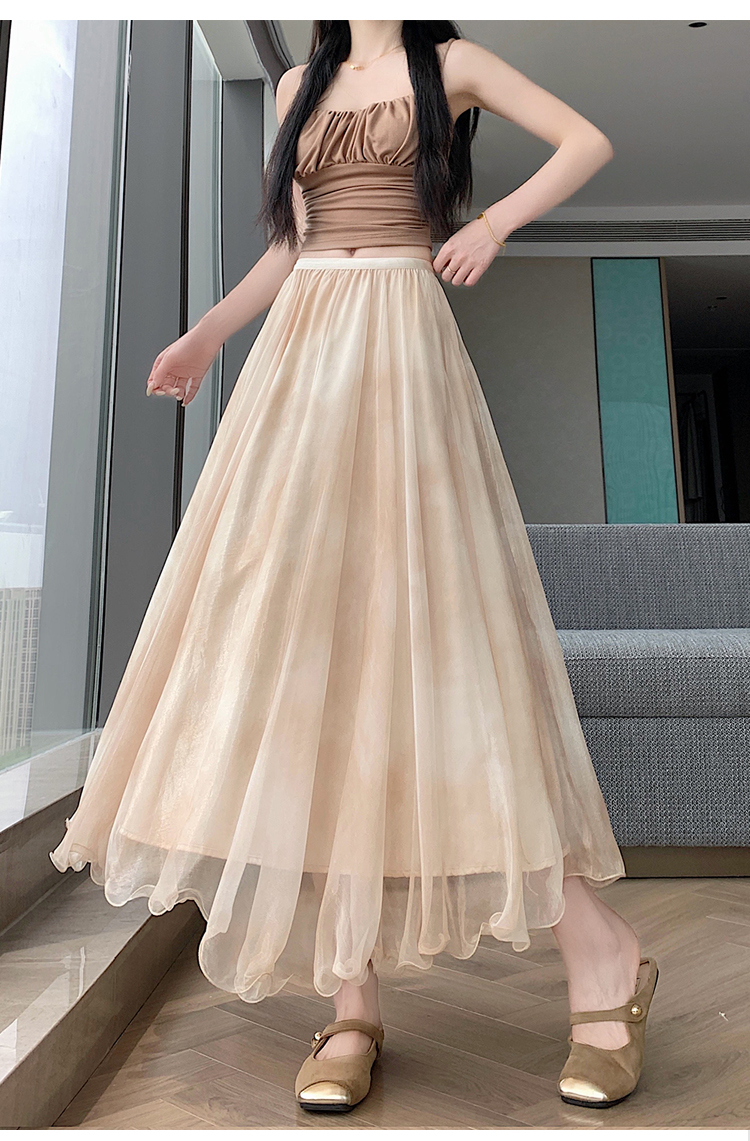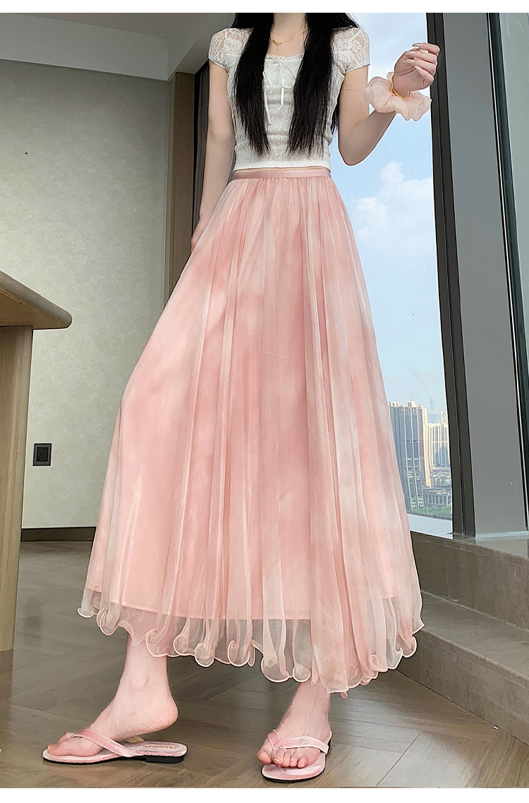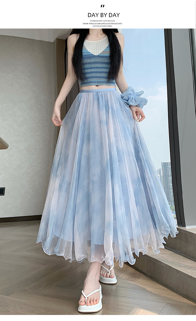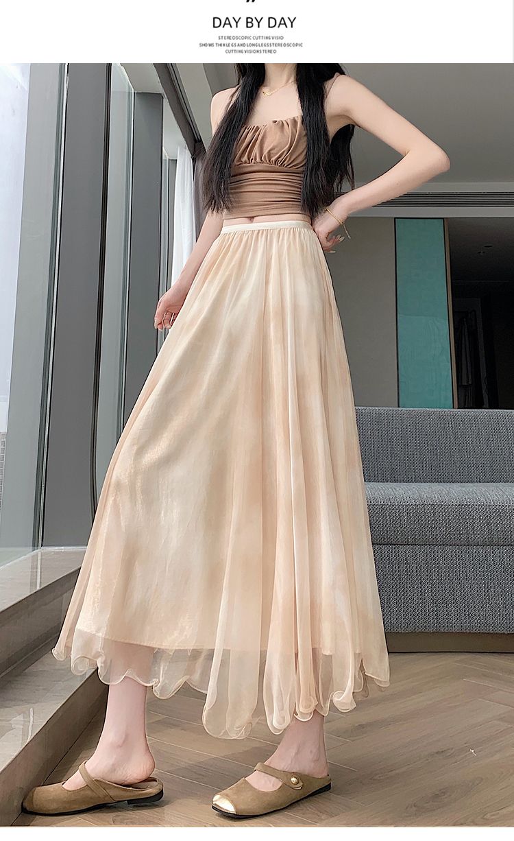 실사 프랑스식 헤일로 염색 깃발 실 롱 스커트 여성 여름 새로운 루즈핏 슬림해 보이는 반신 스커트 도루 가을 센스 플리츠 한 마디