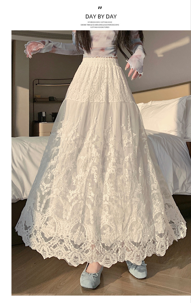 실사 2026 봄 여름 새로운 한국 스타일 루즈핏 연령 감소 불규칙 반신 스커트 레이스 조각 계층의 감각 미니 스커트
