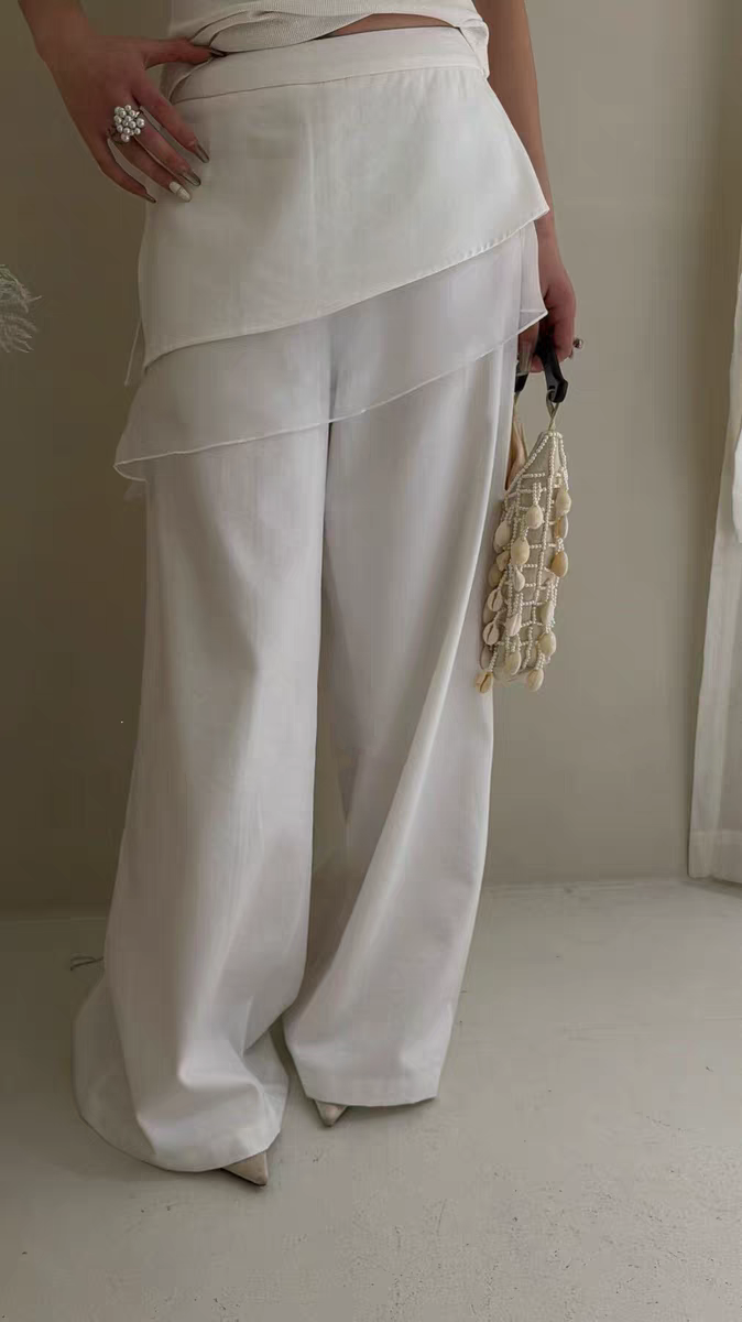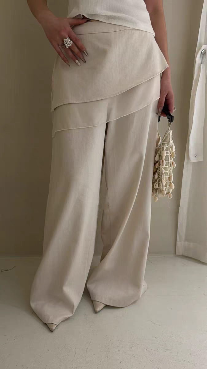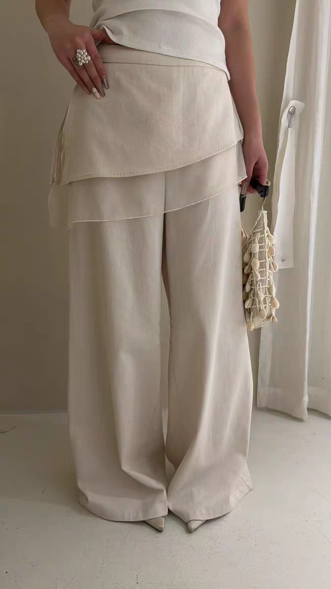 한국 동대문 새로운 아름다운 레트로 스타일 분위기 센스 방귀 커튼 페이크 레이어드 패치워크 캐주얼 와이드 레그 팬츠