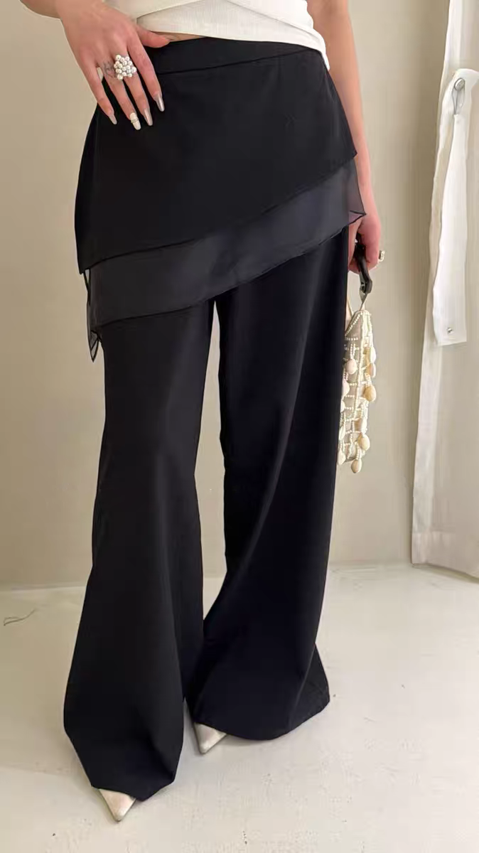실사 레이스 페이크 레이어드 방귀 커튼 부츠컷 바지 여성 2026 봄 여름 하이웨이스트 슬림해 보이는 캐주얼 바지 도루 센스 바닥 청소 긴 바지
