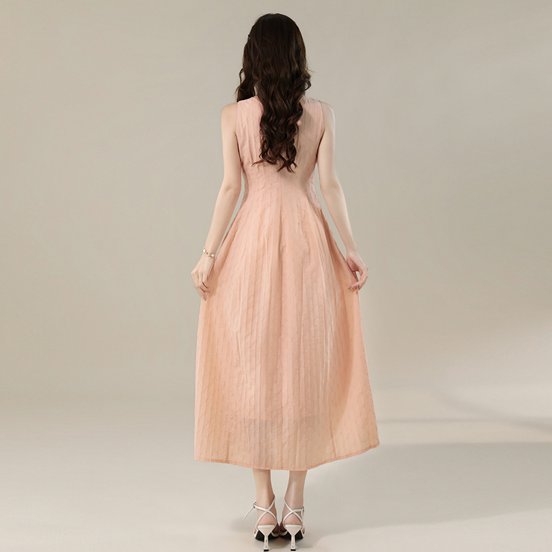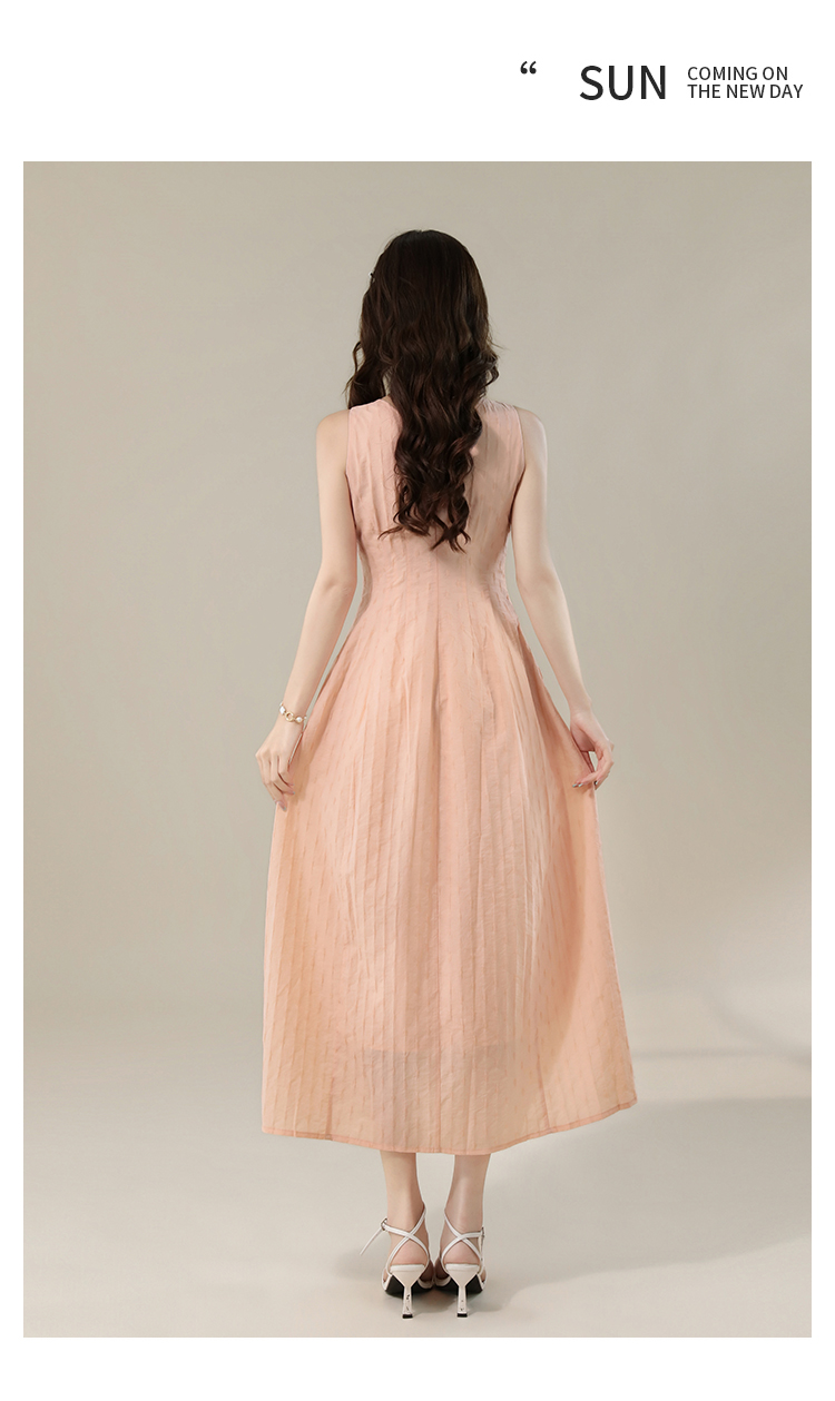 실사 2026 여름 새로운 달콤함 연령 감소 광장 칼라 프릴 하트 버클 신축성 허리 수축 슬림해 보이는 롱 코트 드레스