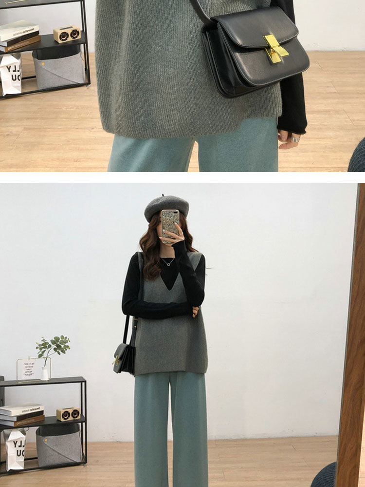 V넥 회색 스팽글 민소매 니트 조끼 여자 가을 겨울 루즈핏 스택 착용 고급 센스 레트로 품격 맨위