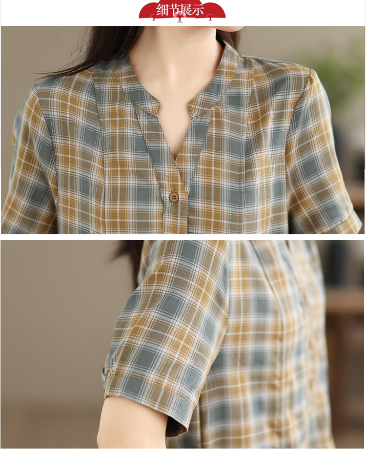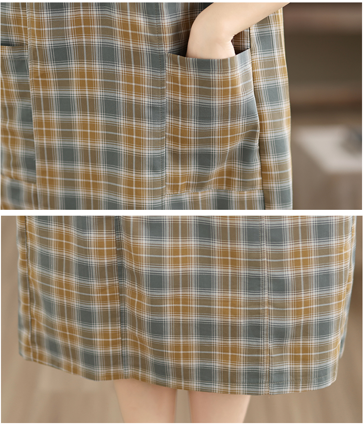 실사 순면 품격 체크무늬 드레스 2026 여름 얇은 스타일 루즈핏 빅 사이즈 패션 V넥 외국 가스 엄마 치마