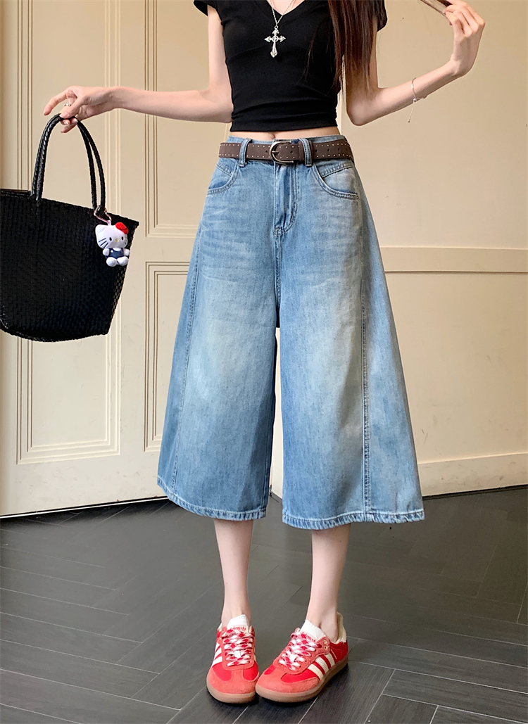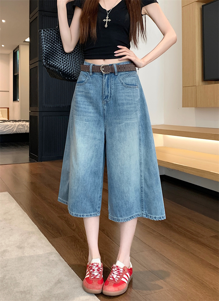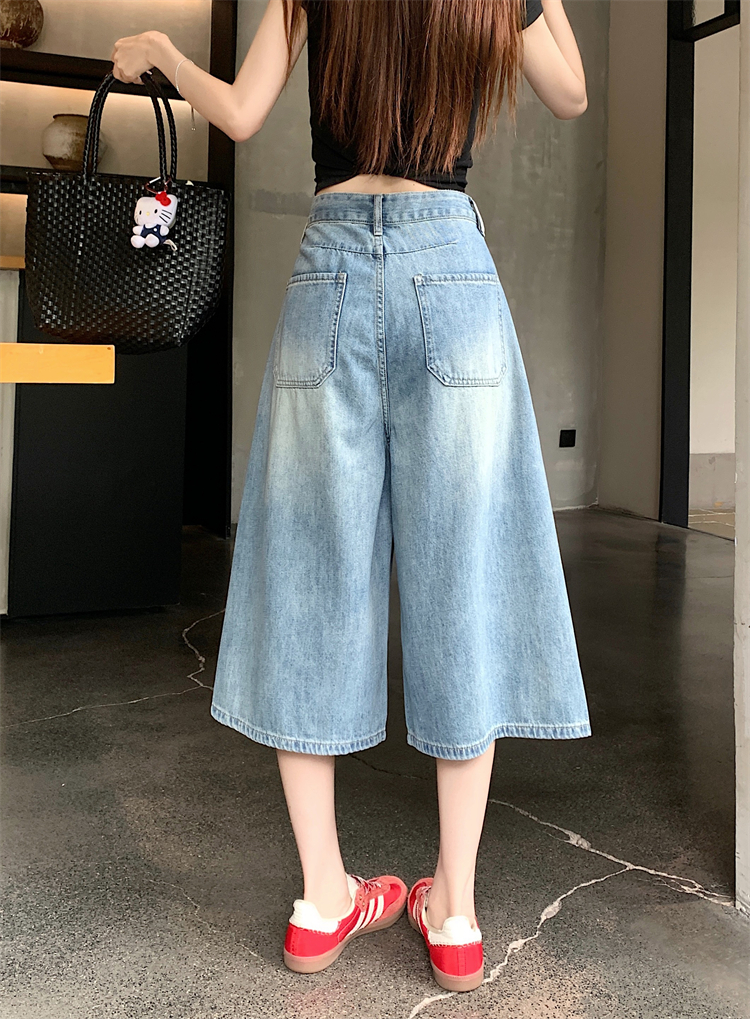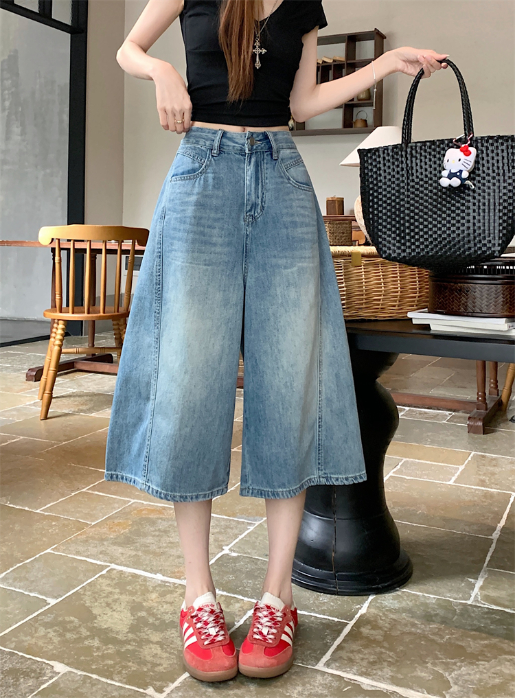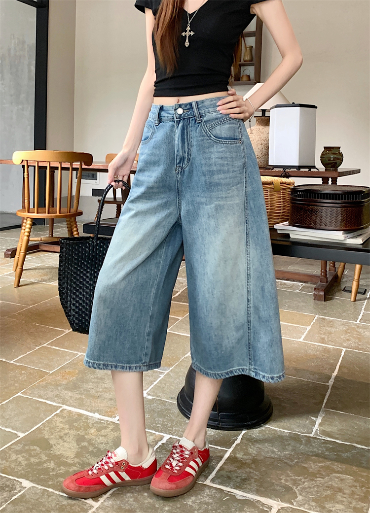 실사 아메리칸 레트로 워싱 넓은 다리 8 점 청바지 여성 새로운 하이웨이스트 슬림해 보이는 한 마디 스트레이트 8 점 바지