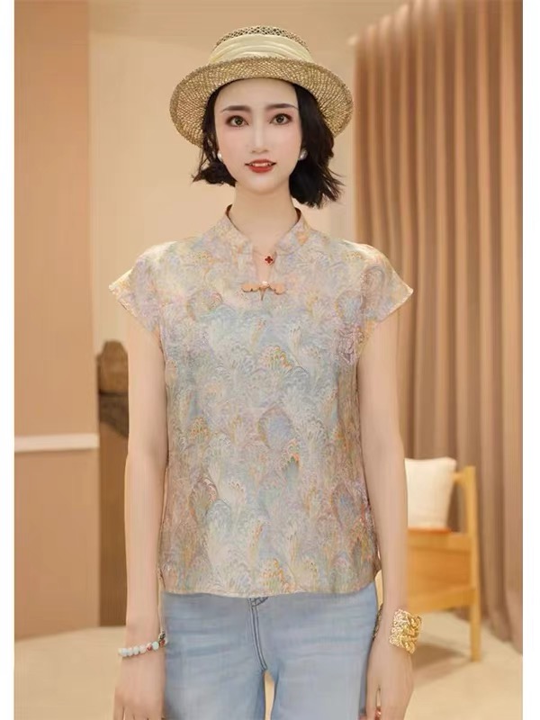 칭다이 새로운 중식 스탠드 칼라 비스듬한 襟 맨위 2026 여름 얇고 가벼운 통기성 편안한 맨위 작은 셔츠