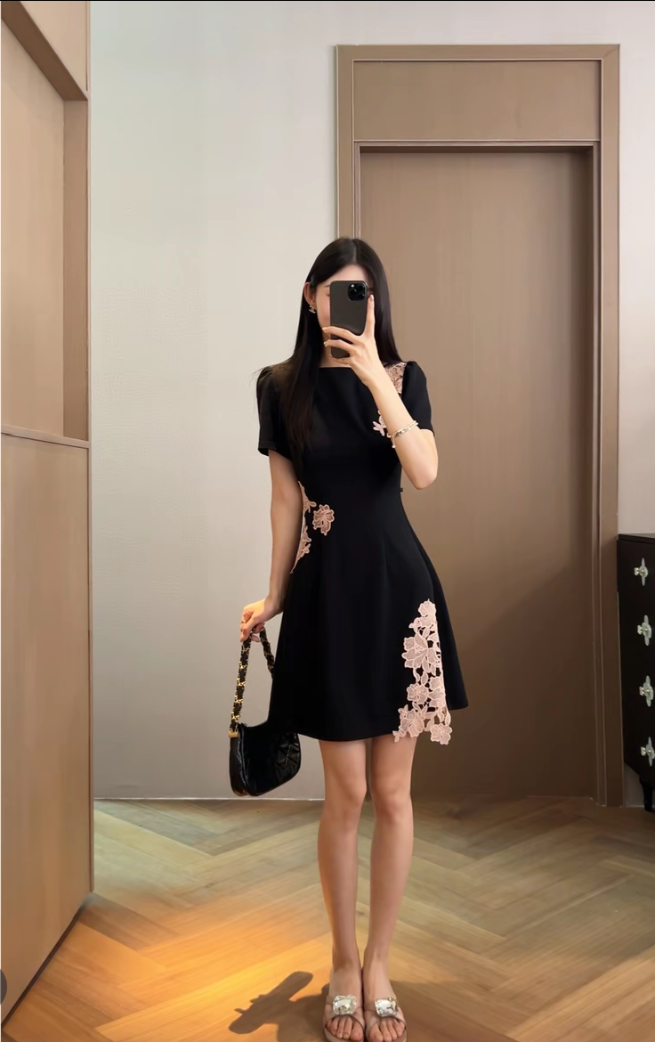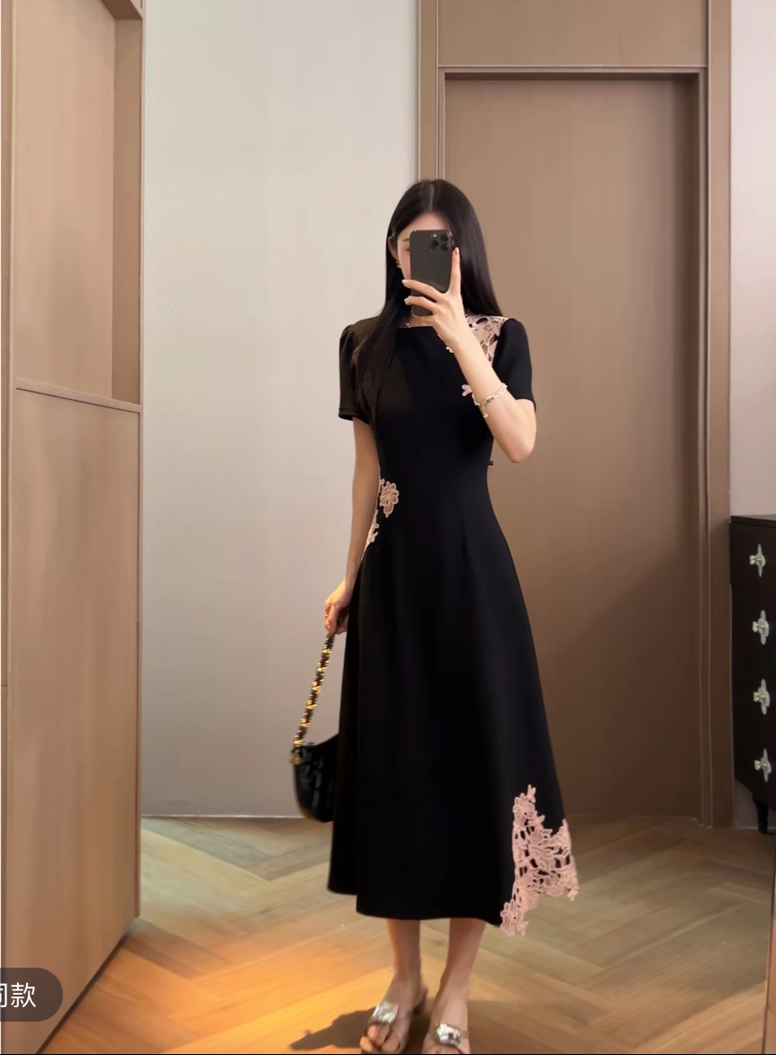 2026 여름 레트로 반팔 검정색 작은 검은 드레스 슬림해 보이는 품격 패션 디자인 센스 드레스