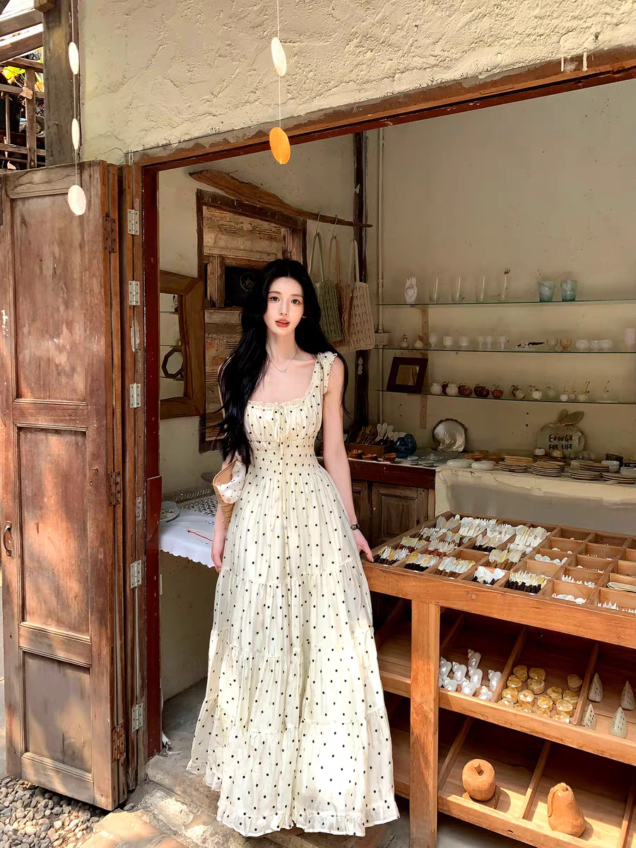 4 29 pm20 신제품 켜기 새로운 하나 달콤한 복숭아 yikett 도트 무늬 드레스
