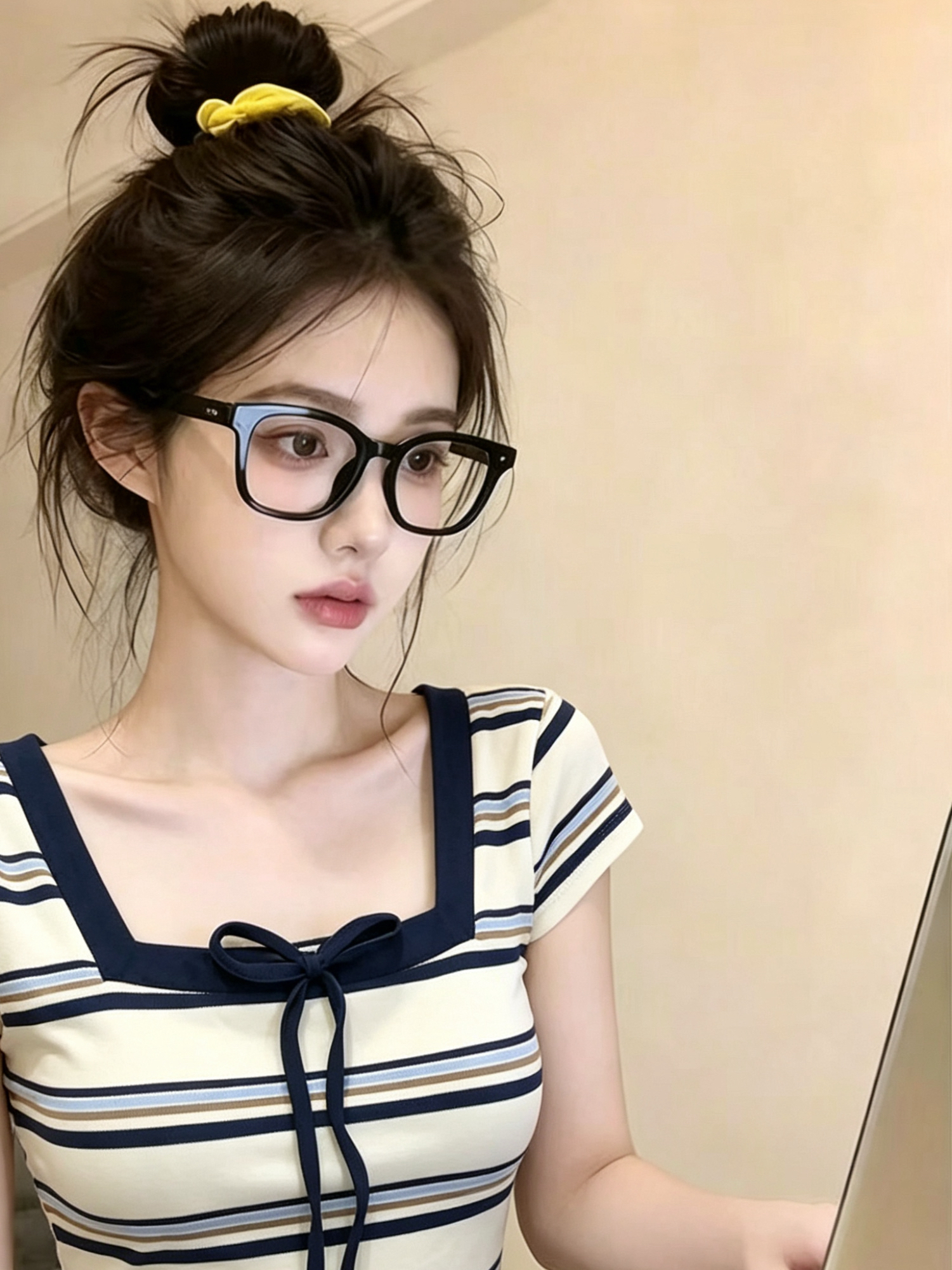 실사 한국 스타일 티셔츠 여성 2026 새로운 패치워크 나비 매듭 슬림해 보이는 디자인 센스 작은 대중 여름 반팔 맨위
