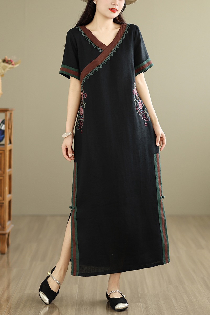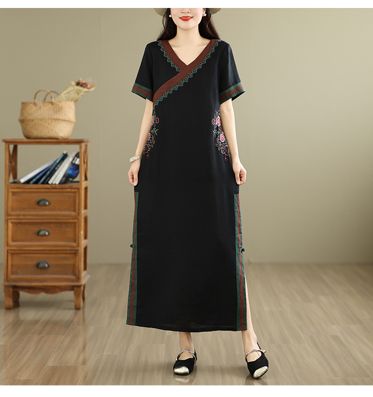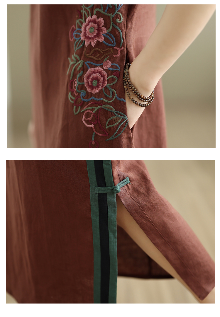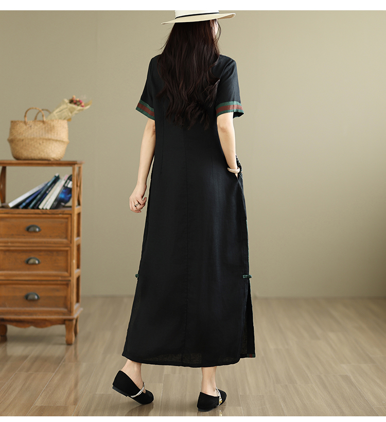 여름 요금 품격 슬림해 보이는 면 린넨 중국풍 개선 치파오 2026 여름 새로운 루즈핏 중간 길이 드레스