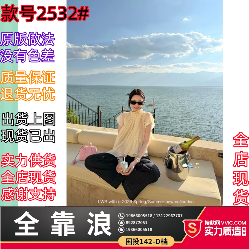 화이트 워터 여성 봄 사람들과 적합한 대 라운드 넥 조끼 여성 여름 휴가 바람 우아한 슬림해 보이는 광대역 플리츠 쉬폰 블라우스