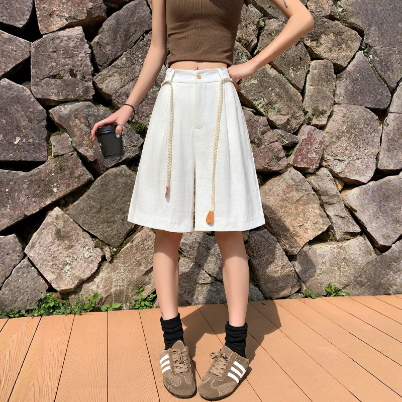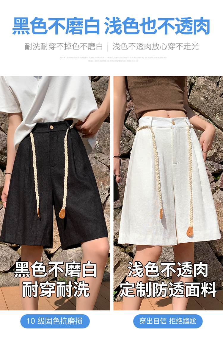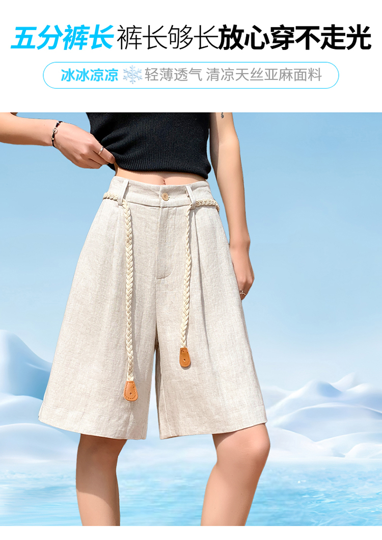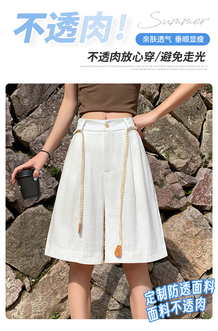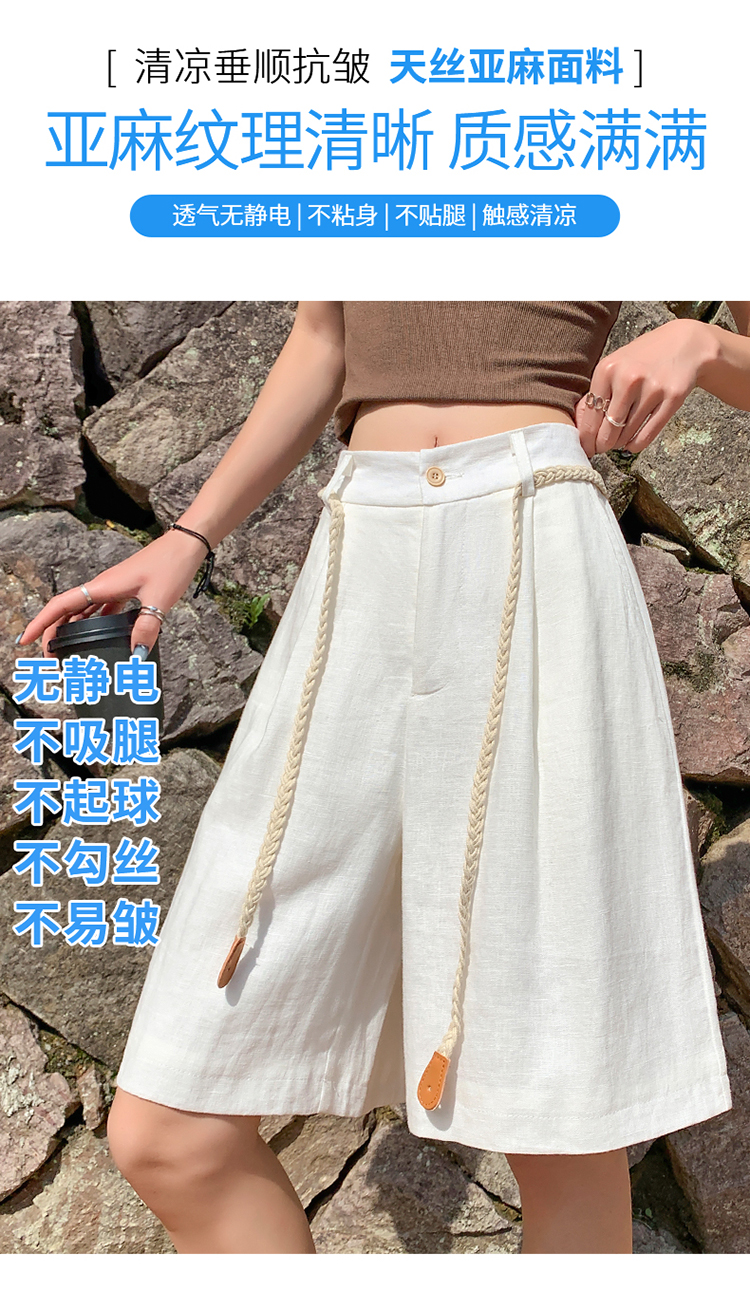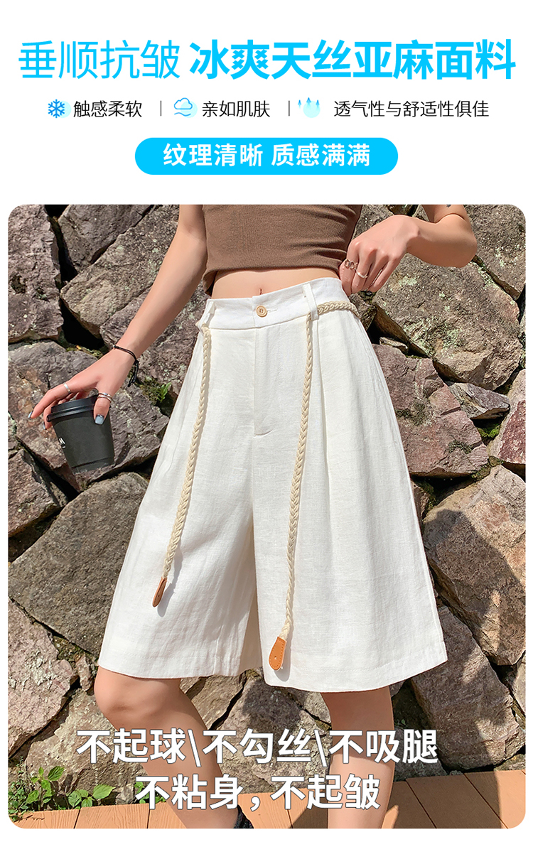 실사 2026 여름 새로운 주간 실크 아마 오부 바지 한 마디 넓은 다리 하이웨이스트 면 린넨 얇은 스타일 반바지 여성