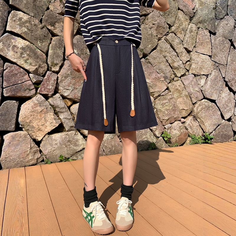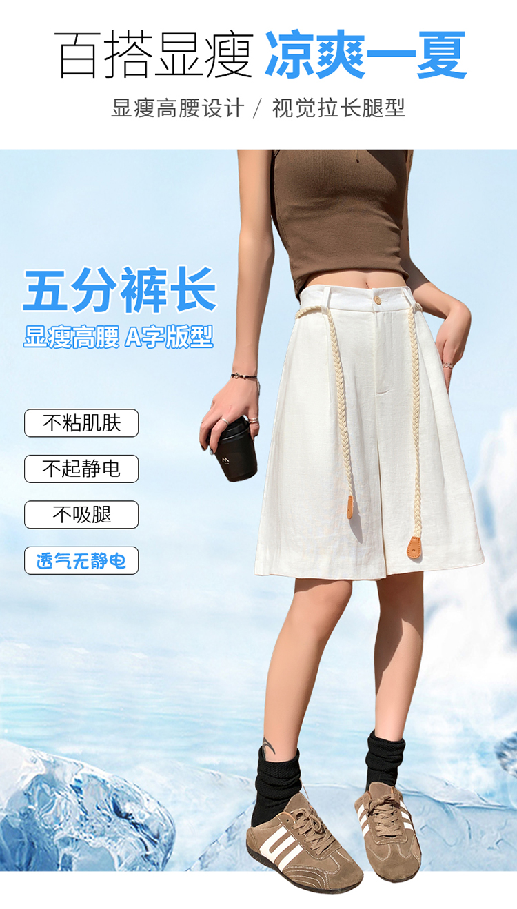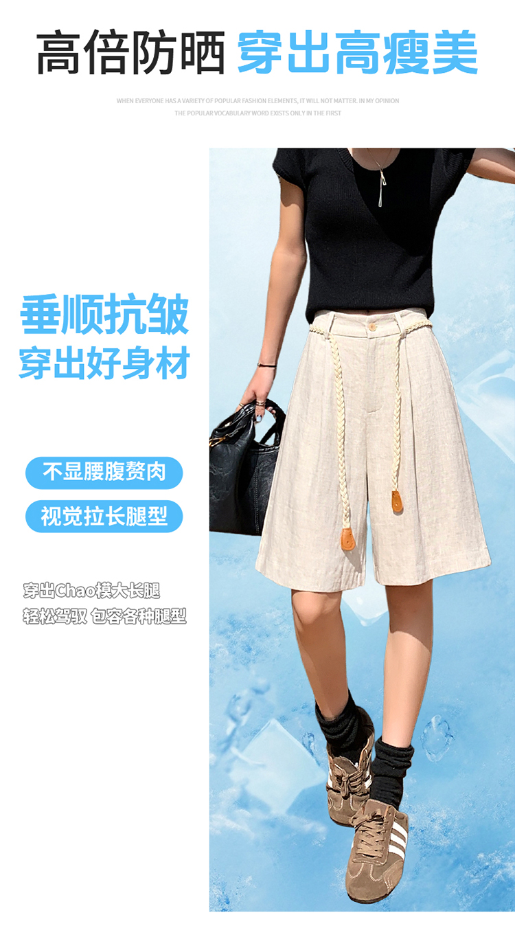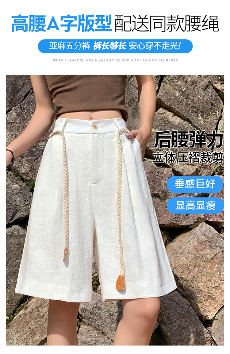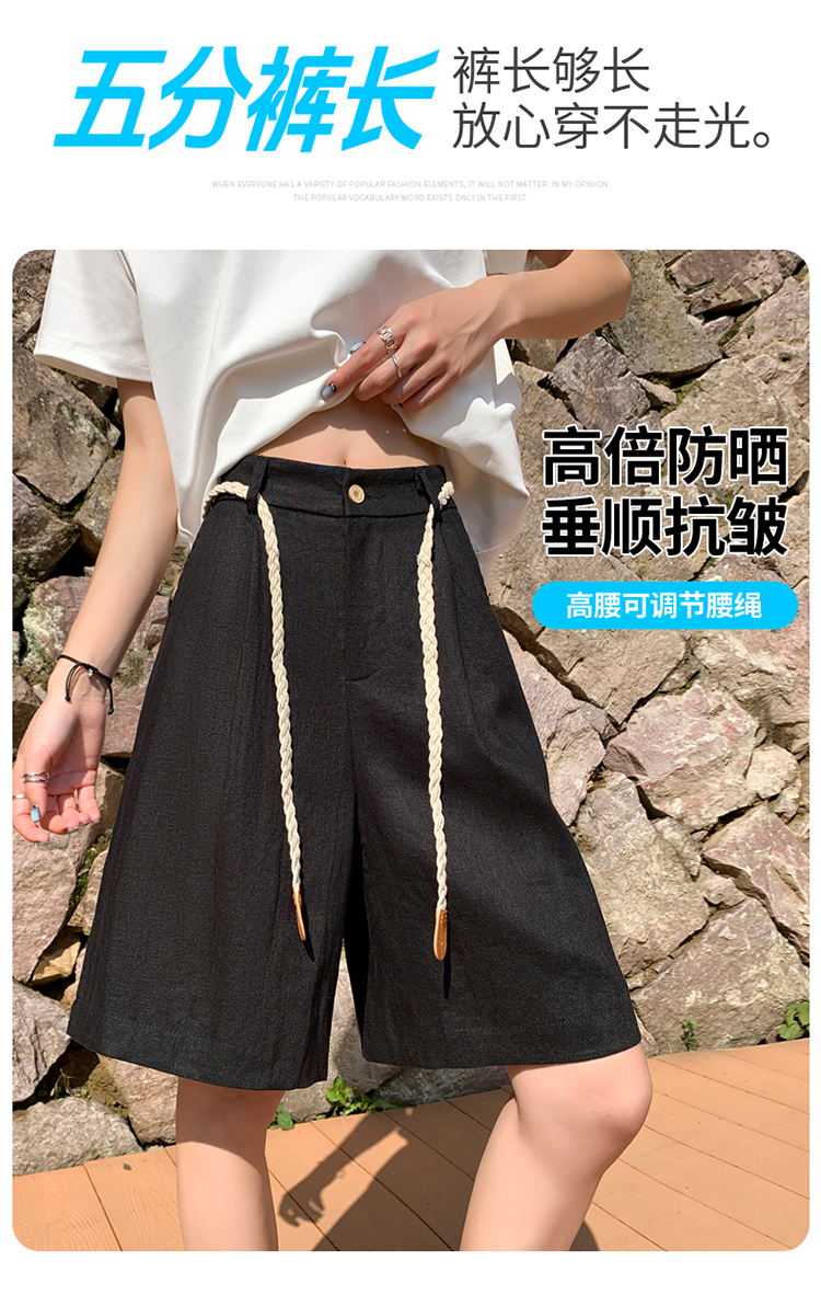 실사 2026 여름 새로운 주간 실크 아마 오부 바지 한 마디 넓은 다리 하이웨이스트 면 린넨 얇은 스타일 반바지 여성