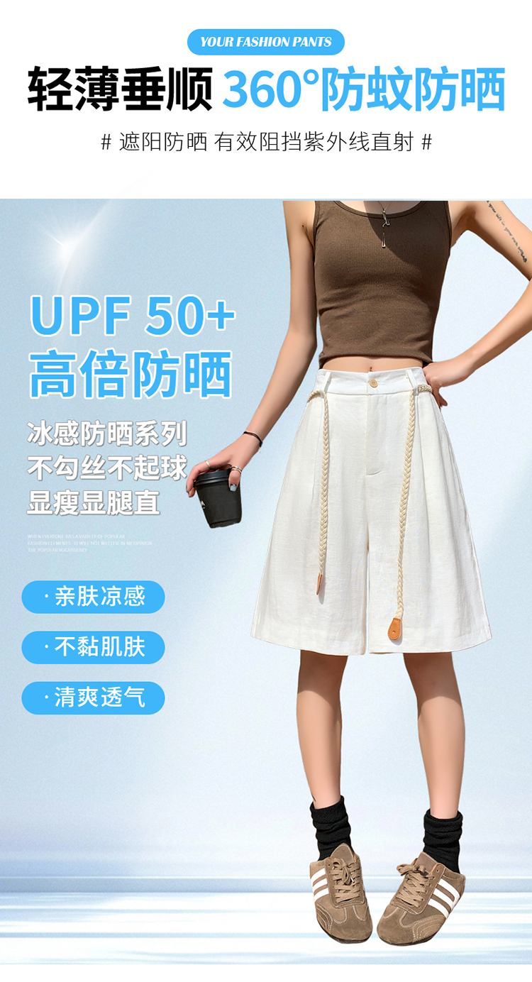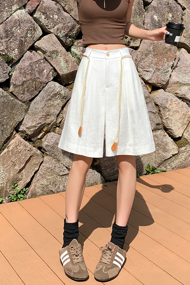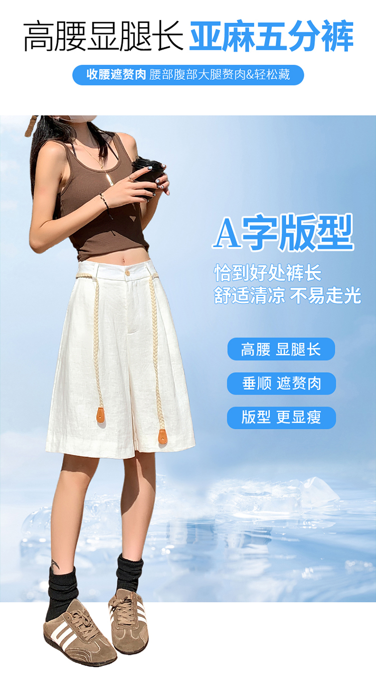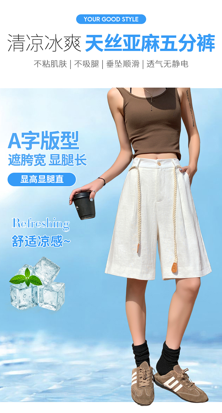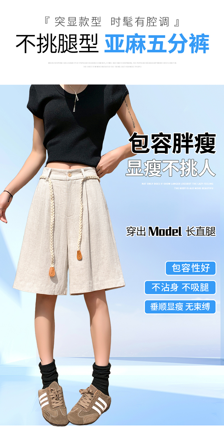 실사 2026 여름 새로운 주간 실크 아마 오부 바지 한 마디 넓은 다리 하이웨이스트 면 린넨 얇은 스타일 반바지 여성