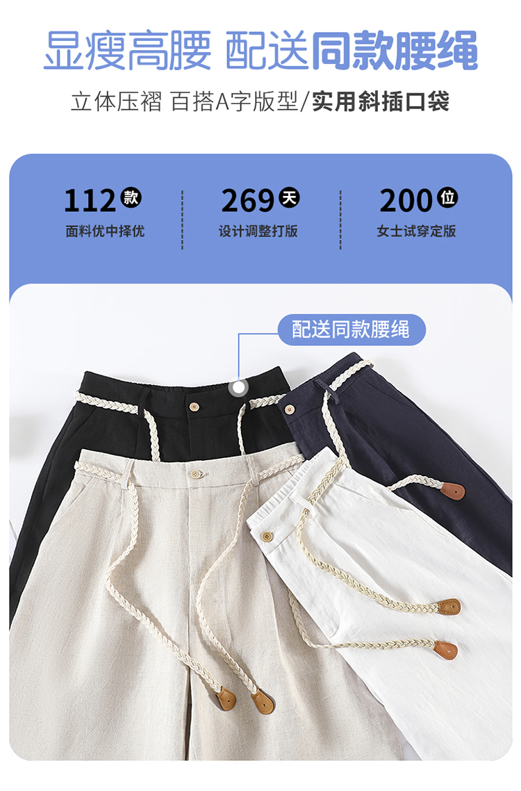 실사 2026 여름 새로운 주간 실크 아마 모통이 칼 바지 하이웨이스트 캐주얼 바지 얼음 실크 넓은 다리 바닥 청소 바지 여성