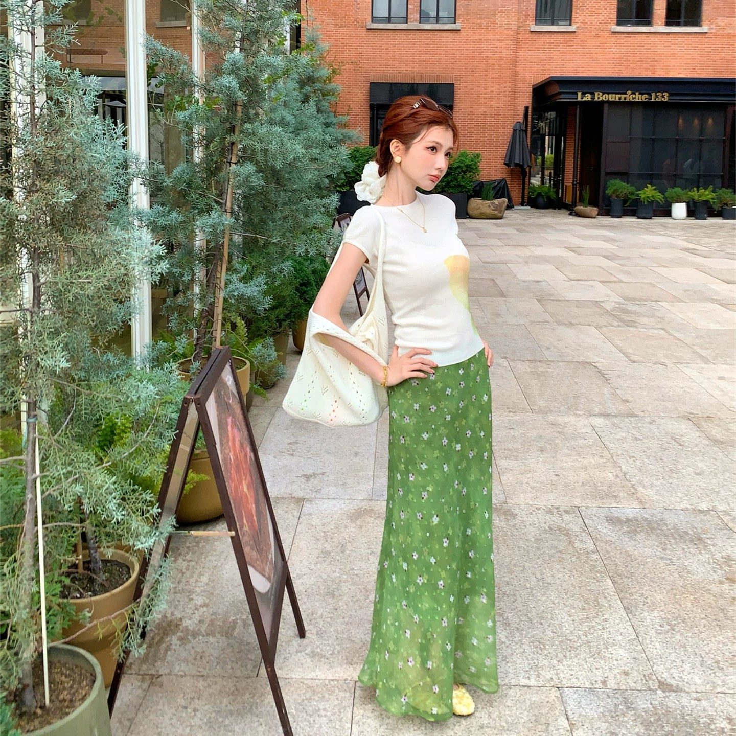 q 여자 집 3 23 꽃 증서 로즈 가든 길다 미니 스커트 더블 버전 분위기 센스 빨간색 휴가 꽃무늬 드레스