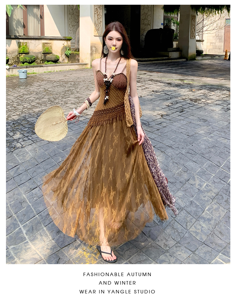 운남 민족 스타일 이국적인 스타일 차 카드 소금 호수 사막 여행 사진 찍기 드레스 해변가 휴가 해변 롱 스커트