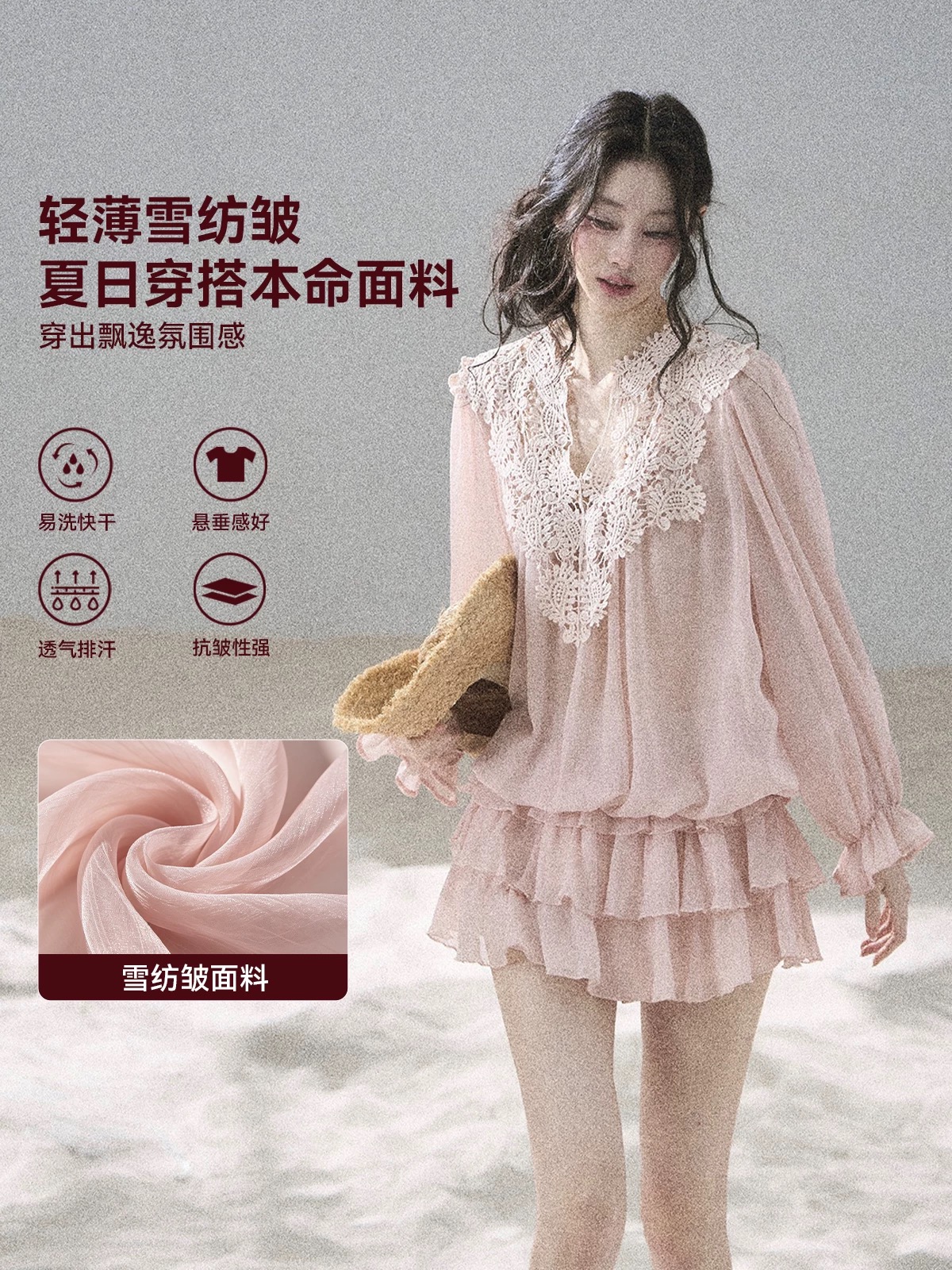 밤나무 코코아 bankelili 팬 바다 리건 프릴 레이스 계층의 감각 작은 날다 소매 광장 칼라 슬립 여성