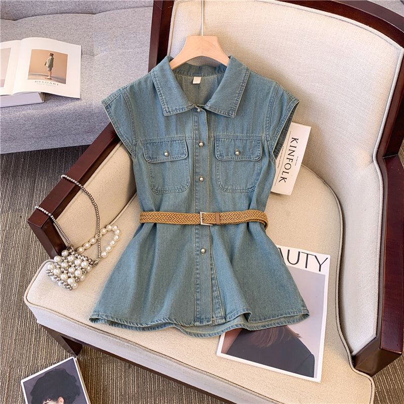 여름 얇은 스타일 몸매 가꾸기 슬림해 보이는 데님 베스트 여성 짧은 2026 새로운 고급 센스 외국 가스 연령 감소 조끼 맨위