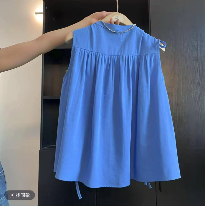 레트로 블루 스타 자수 레이스 폴로 칼라 민소매 조끼 여성 허리 수축 순수한 욕망 바람 작은 대중 디자인 센스 외출용 맨위 여름