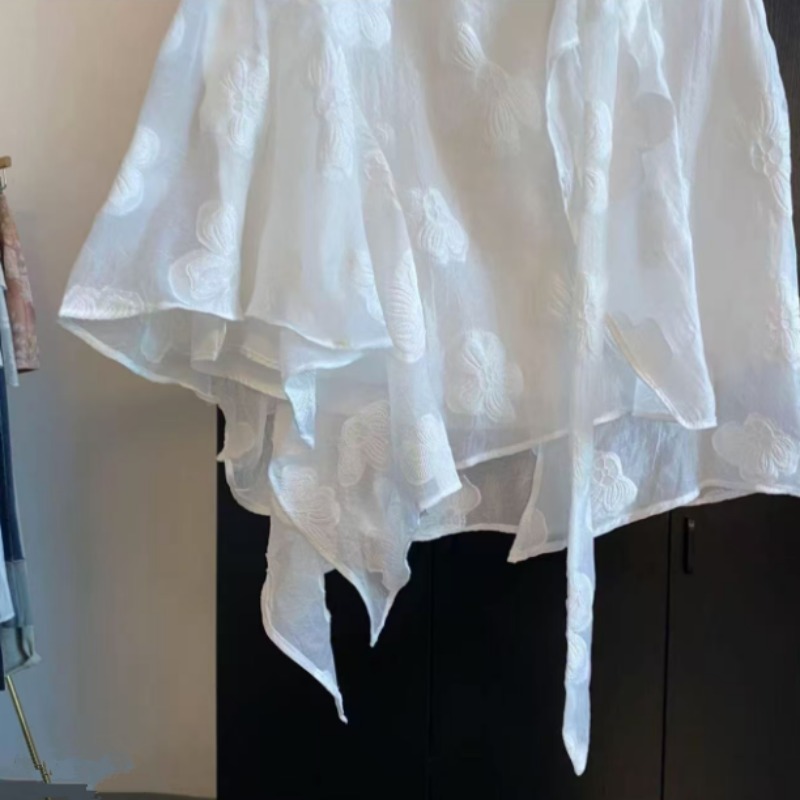 실사 흔들다 칼라 슬립 자수 드레스 해변가 휴가 허리 수축 품격 롱 스커트 자외선 차단 에어컨 셔츠