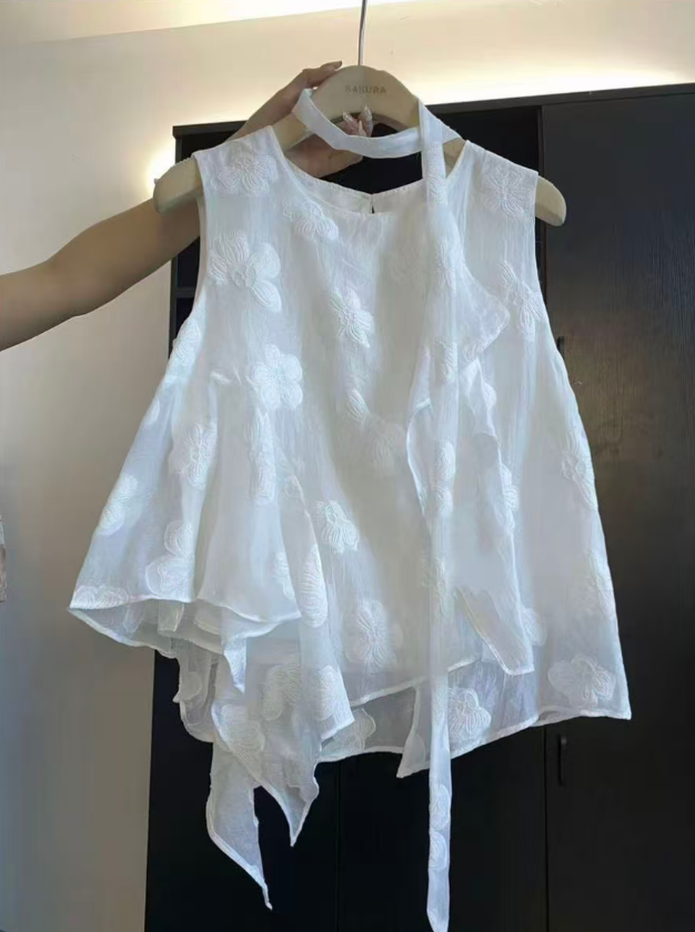 프랑스식 3 차원 꽃 민소매 조끼 맨위 여성 2025 년 여름 새로운 품격 고급 센스 화이트 셔츠 트렌디