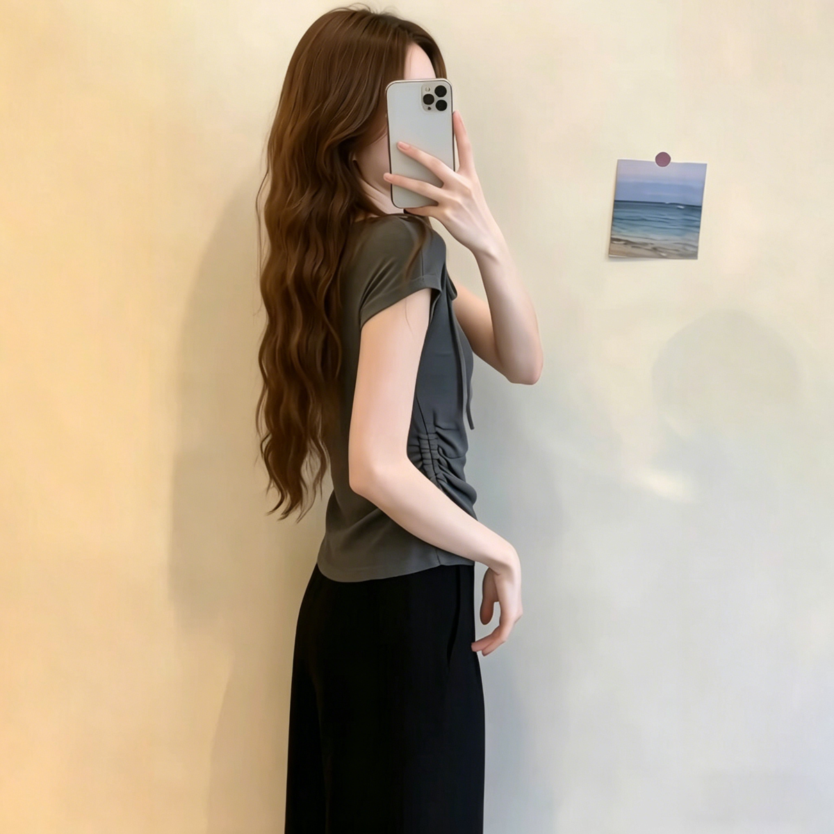 200그램 95 면 5 암모니아 Lun 2026 여름 새로운 한국 스타일 반팔 티셔츠 여성 디자인 센스