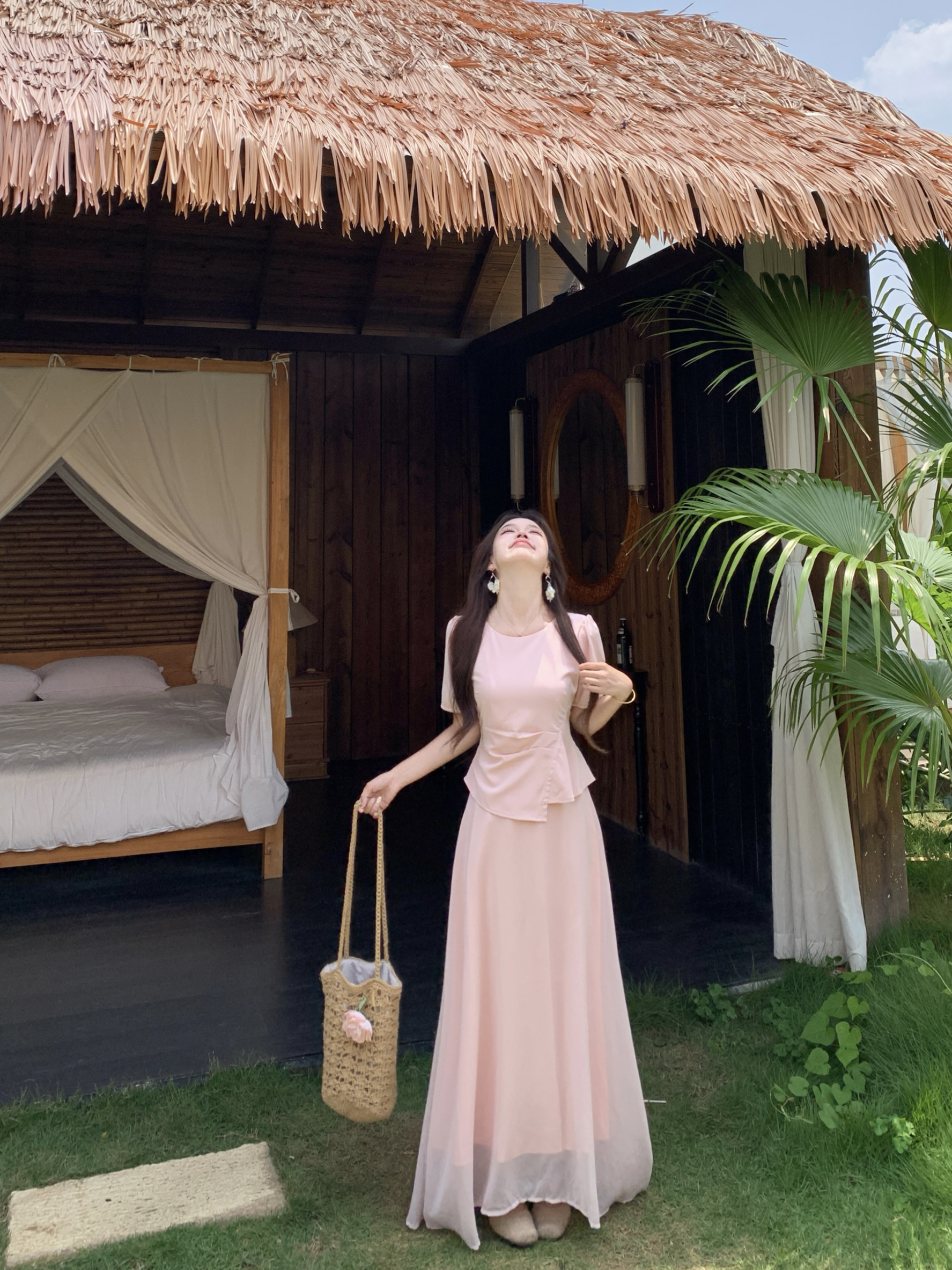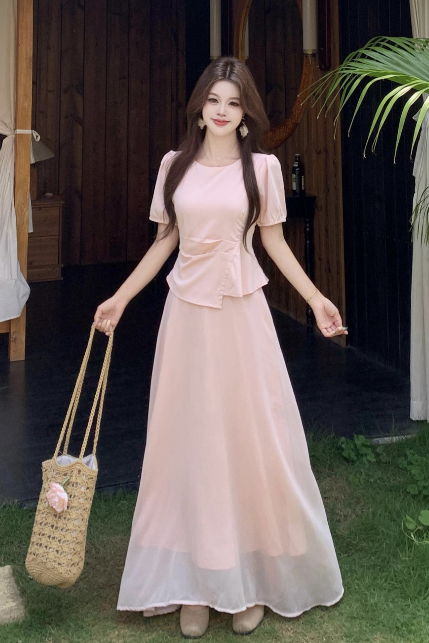 빅 사이즈 마이크로 지방 mm 뮤즈 치마 한 부서 페이크 레이어드 드레스 부드러운 롱 스커트 여성 여름 품격 핑크색 드레스