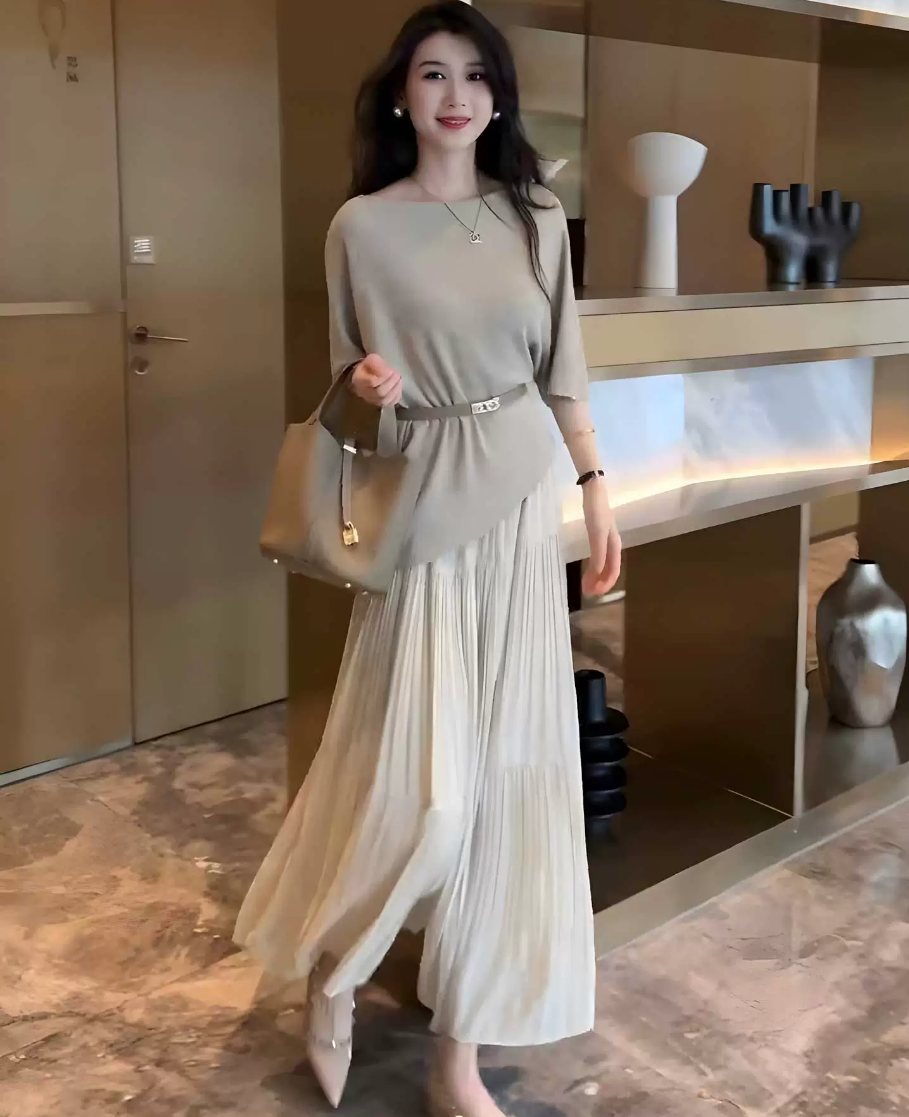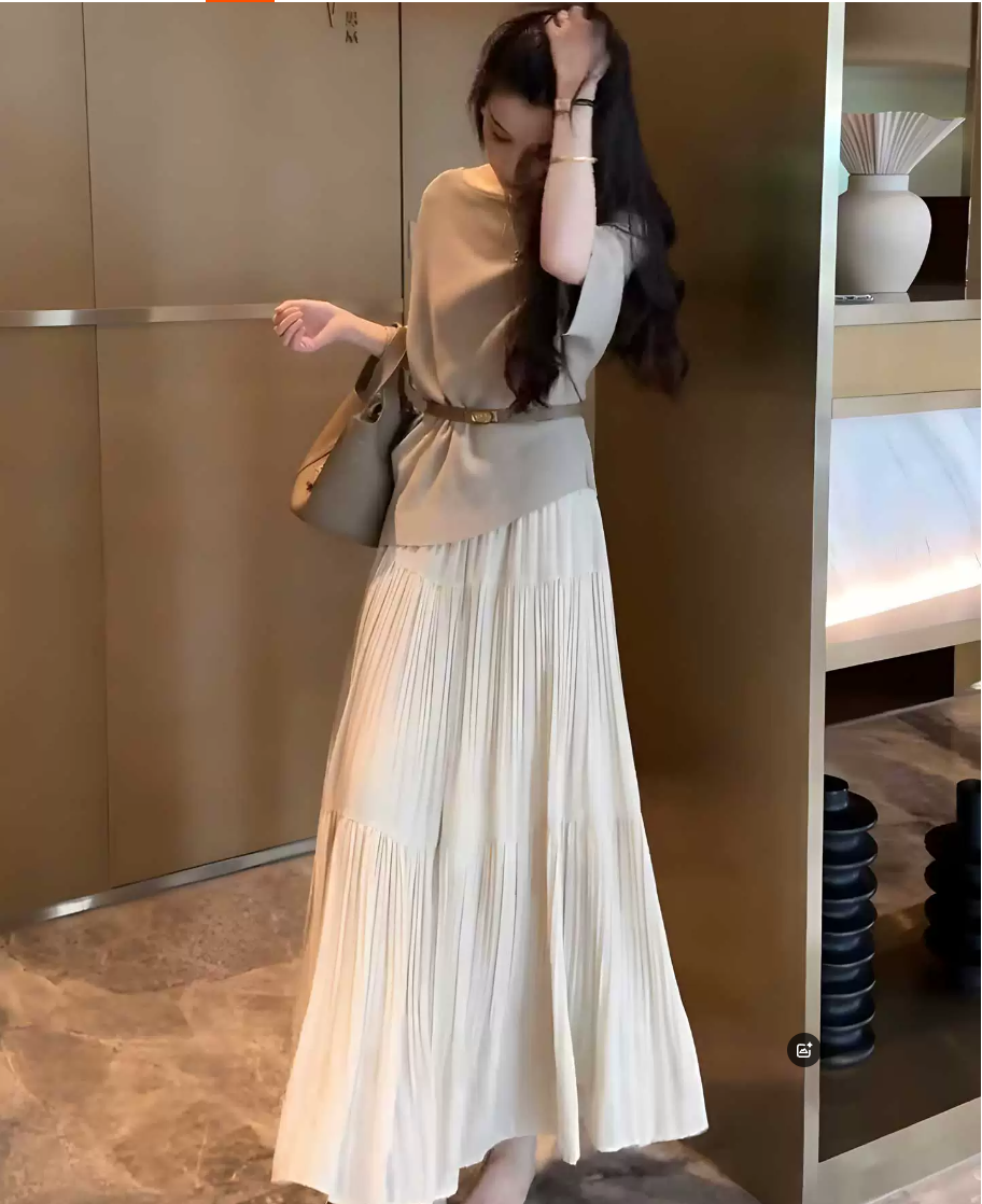 여름 새로운 2026 슈퍼 화재 그레이트 봐 그래. 한 부서 패션 몸매 가꾸기 슬림해 보이는 맨위 회색 반신 스커트 투피스 세트