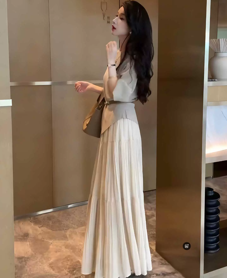 관대 한 점잖은 착용 가져 가라. 전체 집합 품격 자이언트 잘 생긴 ~ 중 치마 세트 여성 여름 2025 새로운 폭발 고급 센스