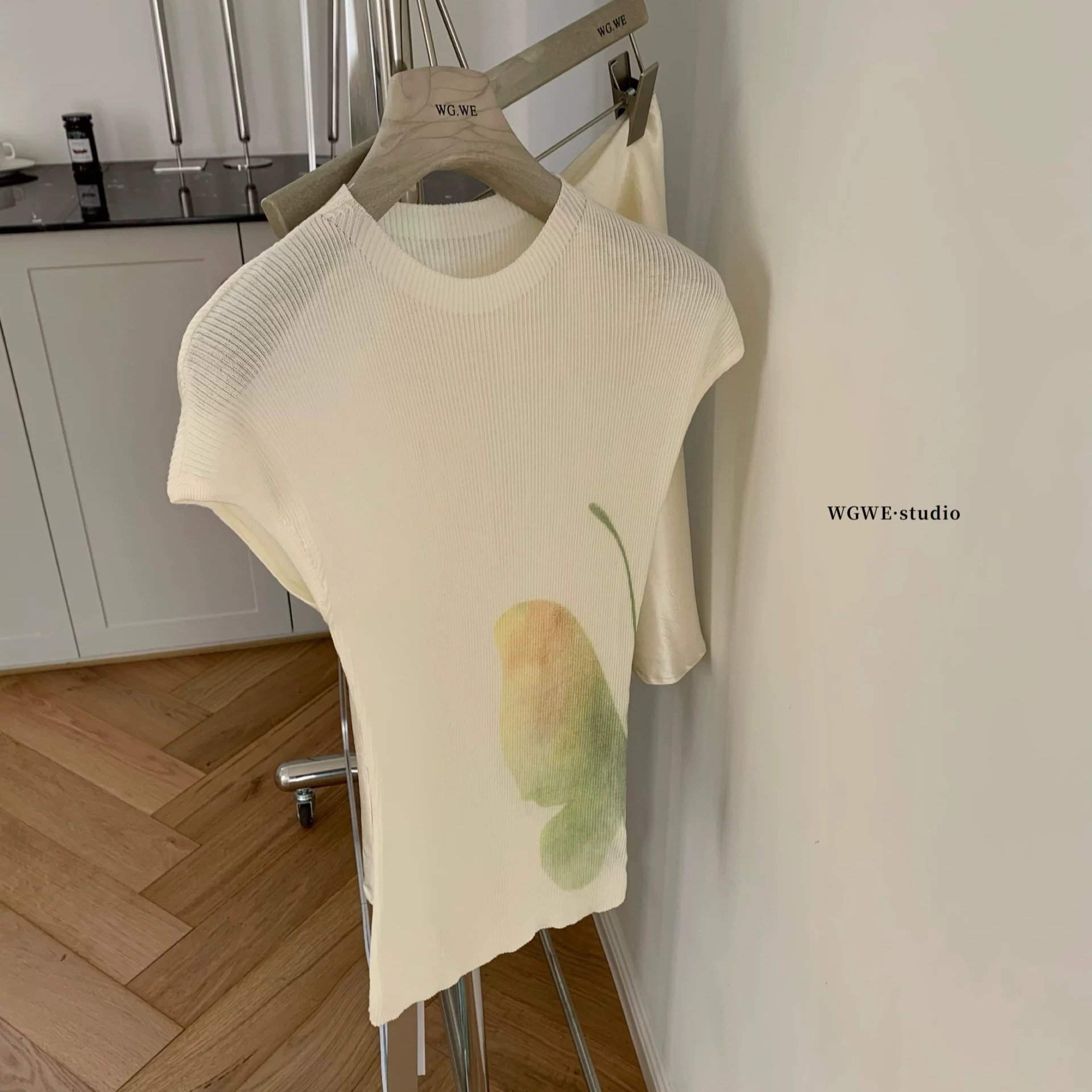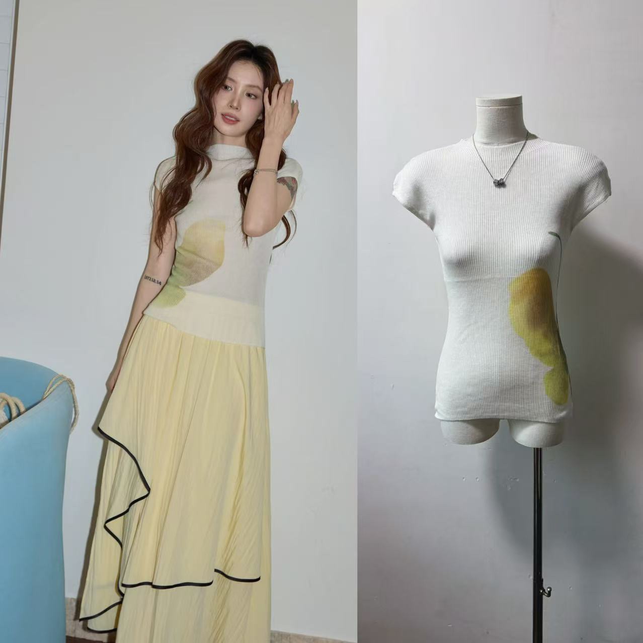 한 부서 자카드 미니멀리즘 홀로우 아웃 니트 조끼 여성 여름 새로운 다용도 반하이넥 외국 가스 민소매 맨위 작은 셔츠