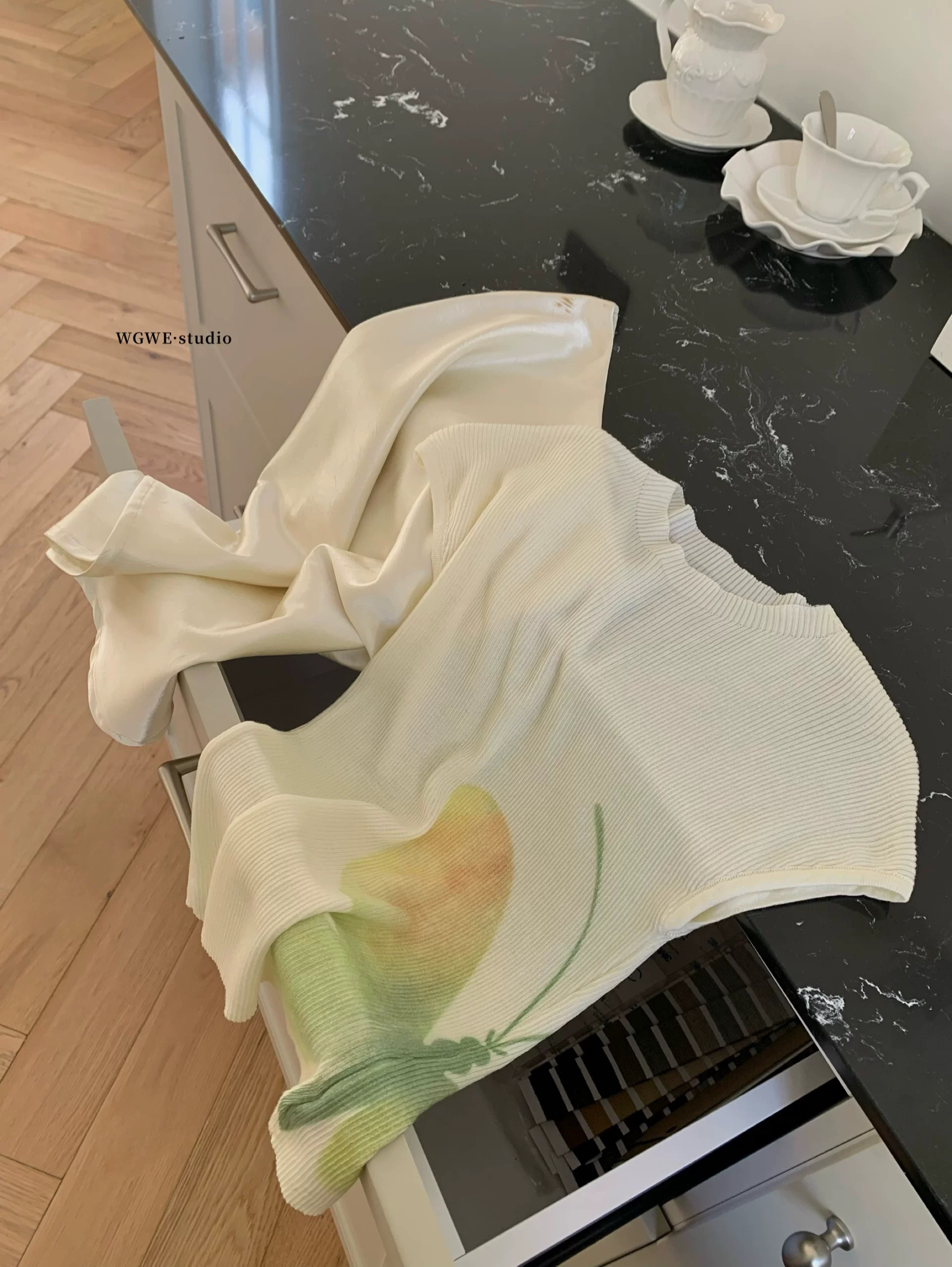 2026 봄 여름 새로운 레트로 품격 고급 센스 홀로우 아웃 자수 쇼트 스타일 민소매 니트 여성 캐미솔