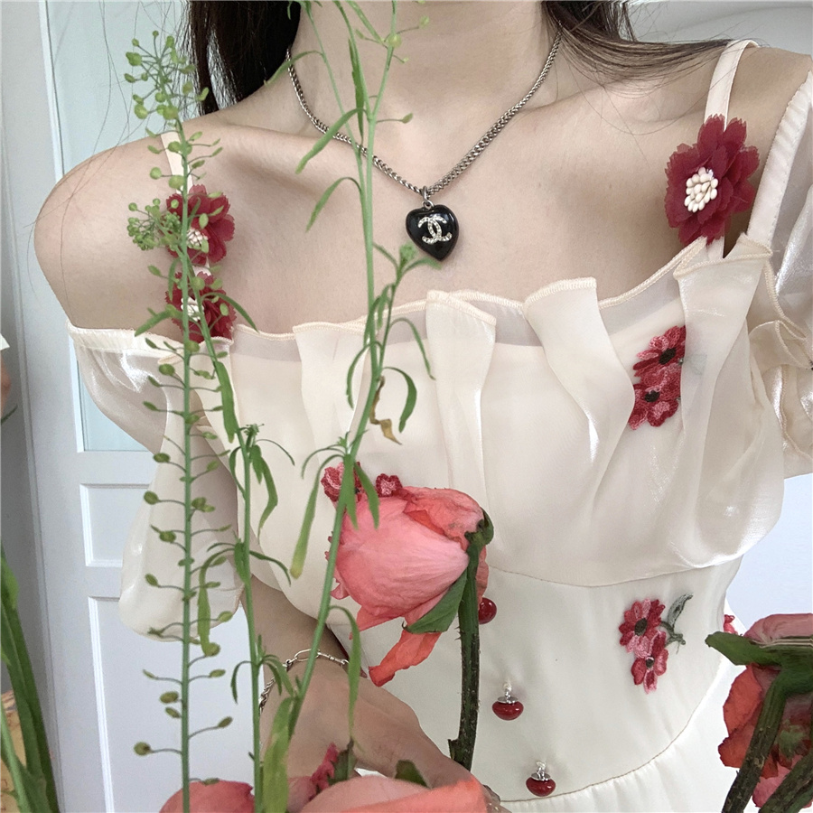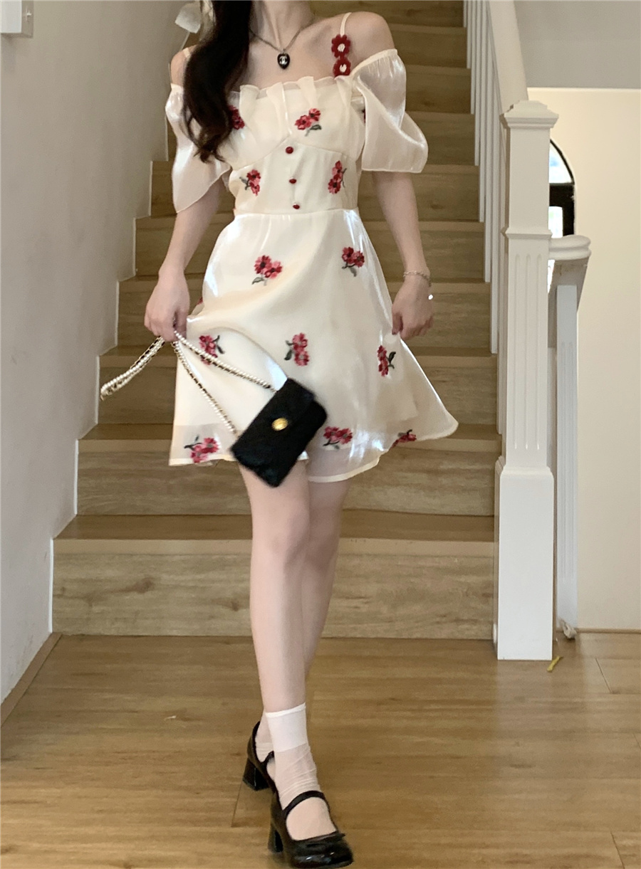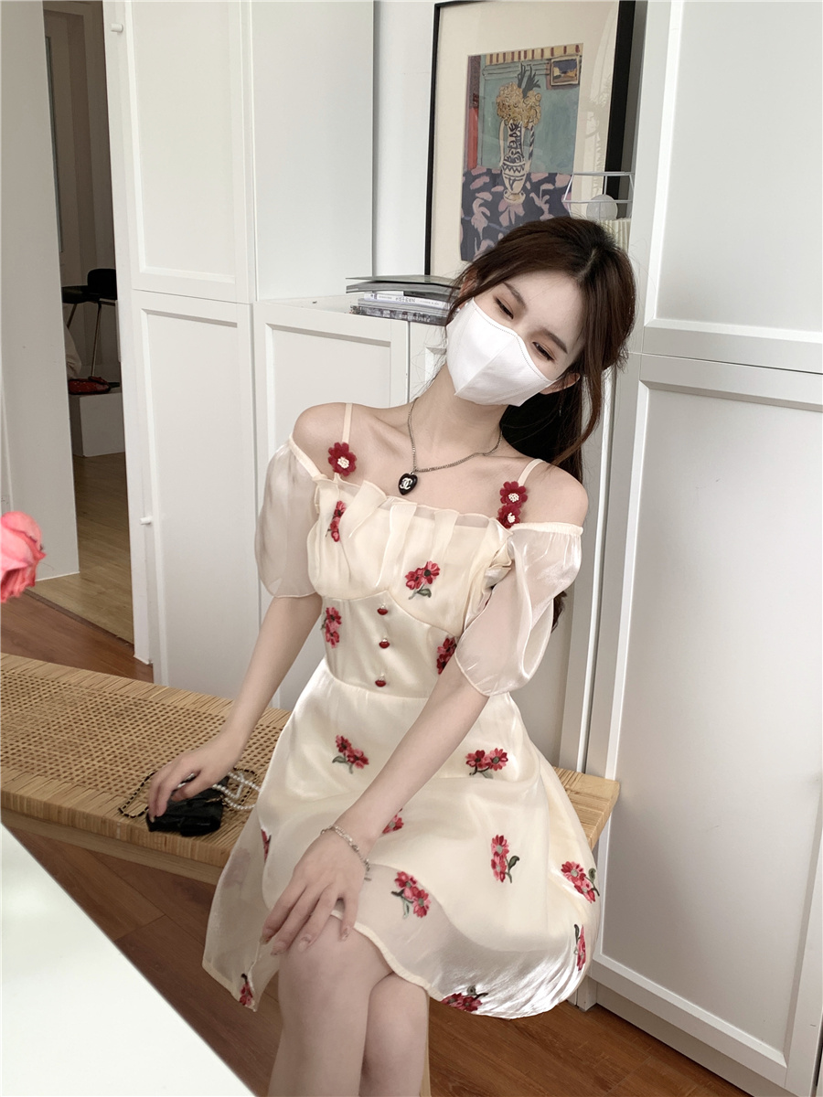 재고 있음 실사 프랑스식 달콤함 첫사랑 꽃무늬 장미 드레스 고급 센스 허리 수축 A라인 스커트 아이들