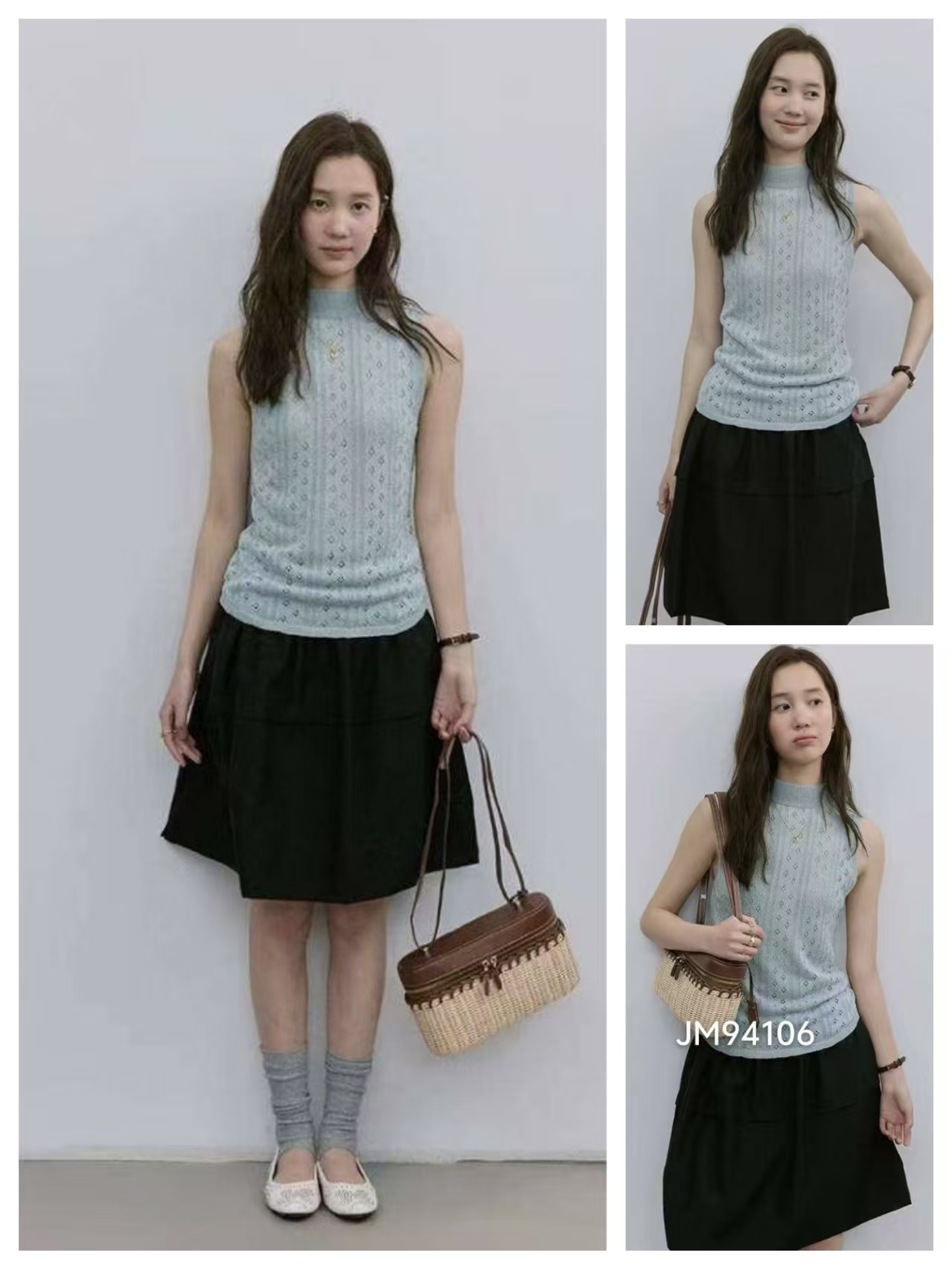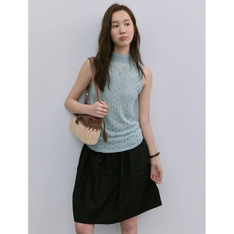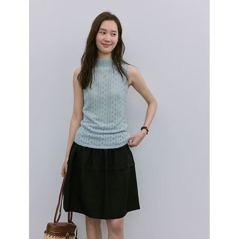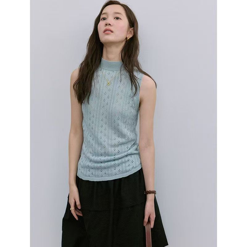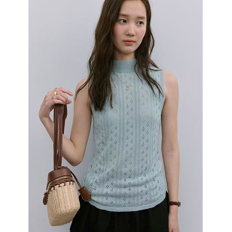 한 부서 자카드 미니멀리즘 홀로우 아웃 니트 조끼 여성 여름 새로운 다용도 반하이넥 외국 가스 민소매 맨위 작은 셔츠