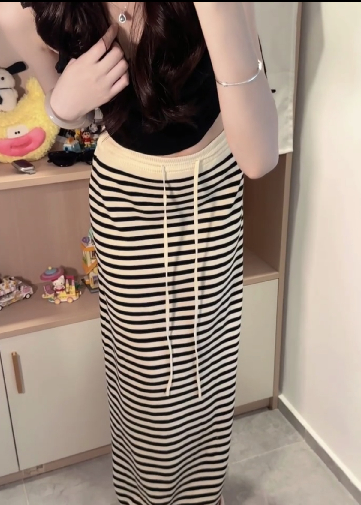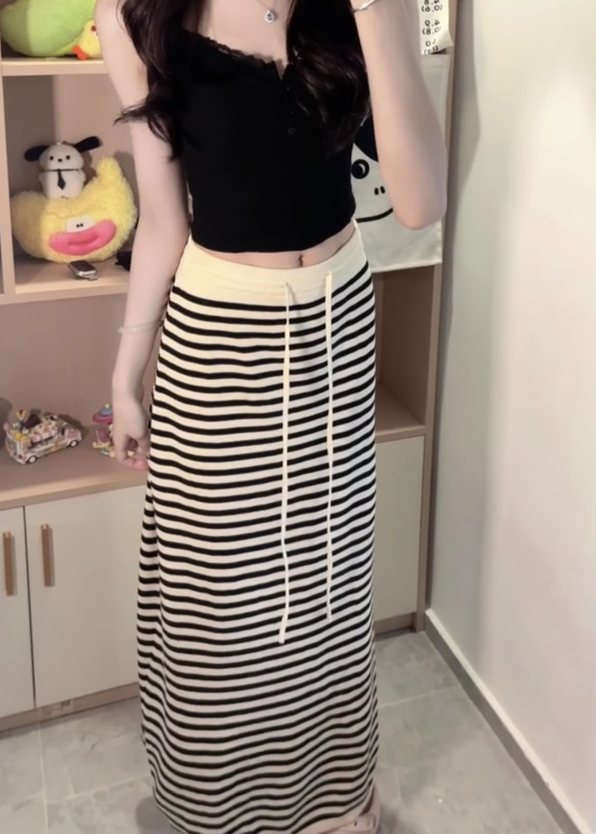 라이 경기 서울 느긋한 스트라이프 니트 반신 스커트 여성 여름 스트레이트 롱 스커트 슬림해 보이는 타이트 스커트 치마