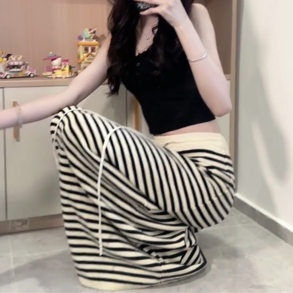 실사 2026 여름 얇은 스타일 유리 실 얼음 실크 치마바지 여성 하이웨이스트 자외선 차단 바지 바닥 청소 바지 여성