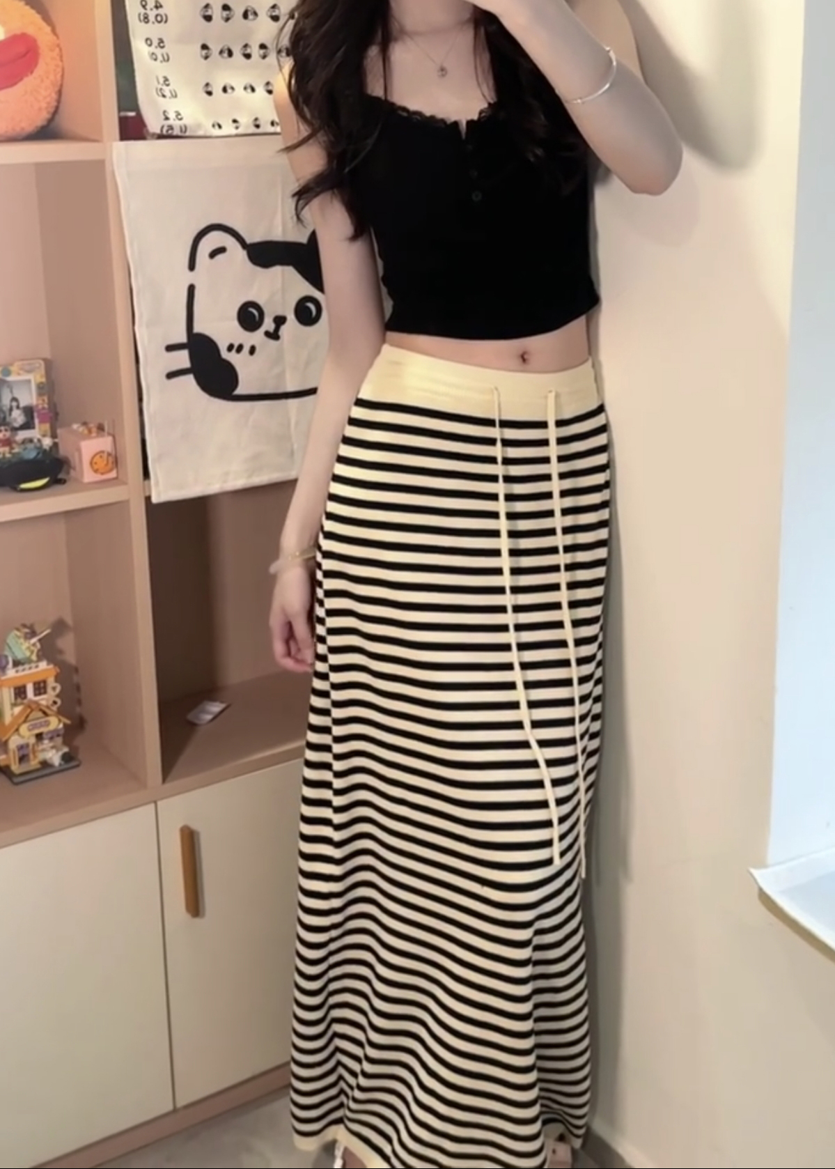 한 부서 디자인 센스 배색 몸매 가꾸기 스트라이프 슬립 맨위 2026 새로운 순수한 욕망 품격 슬림해 보이는 반신 치마 세트