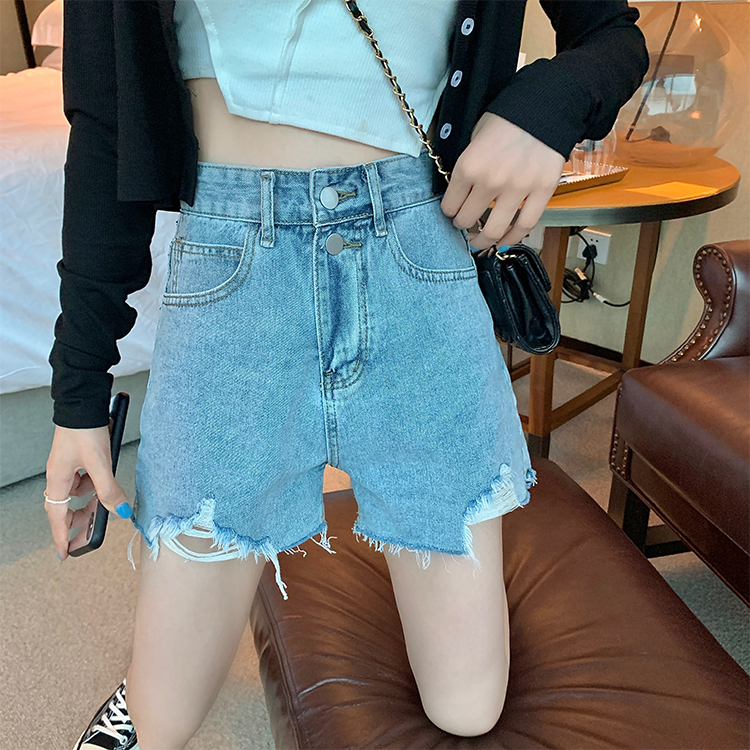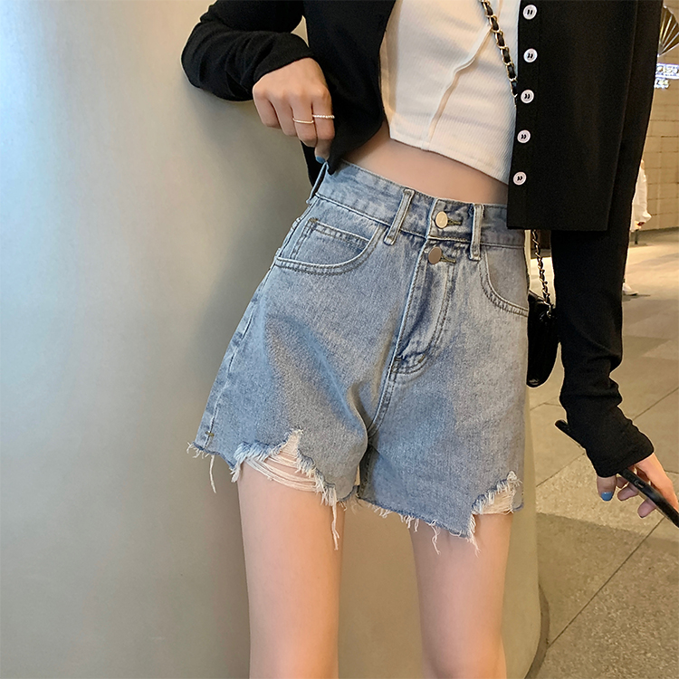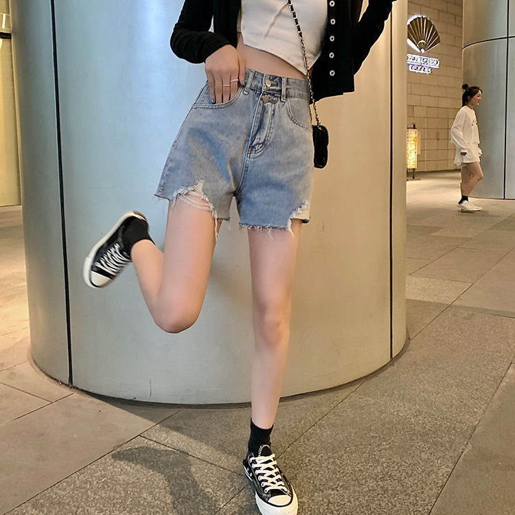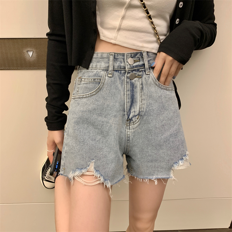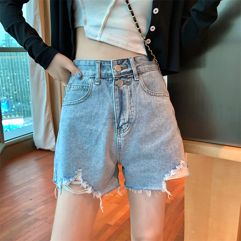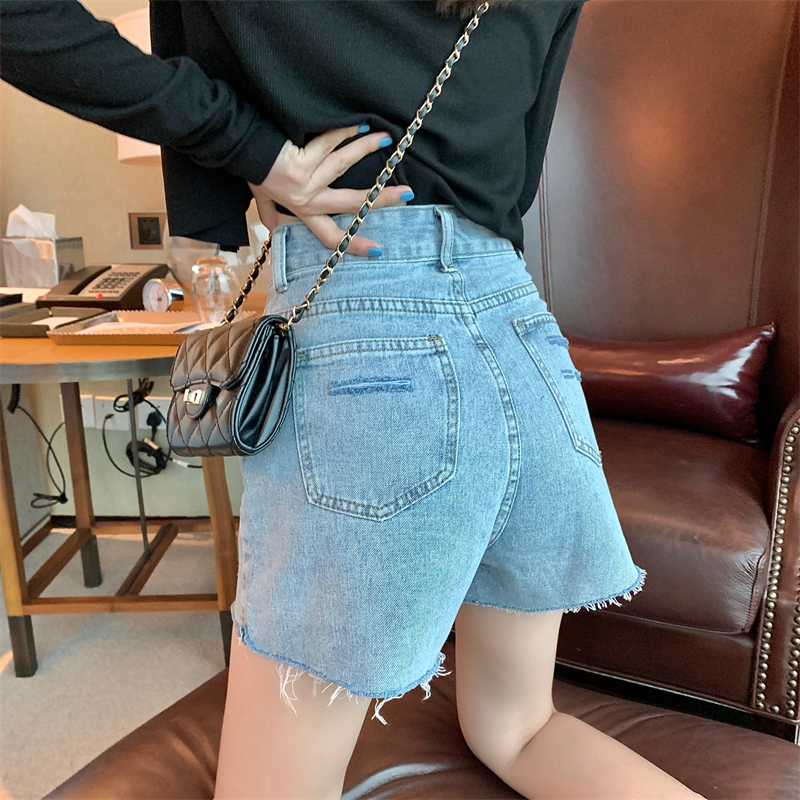 실사 빅 사이즈 여성 의류 거친 가장자리 디자인 워싱 레트로 찢어진 부분 데님 반바지 다용도 슬림해 보이는 와이드 레그 팬츠 핫 바지