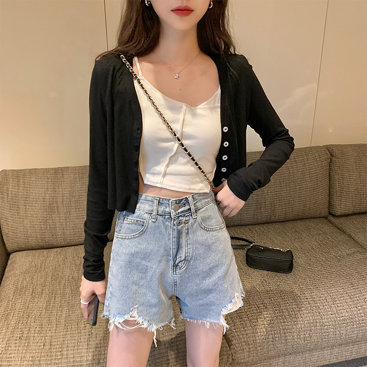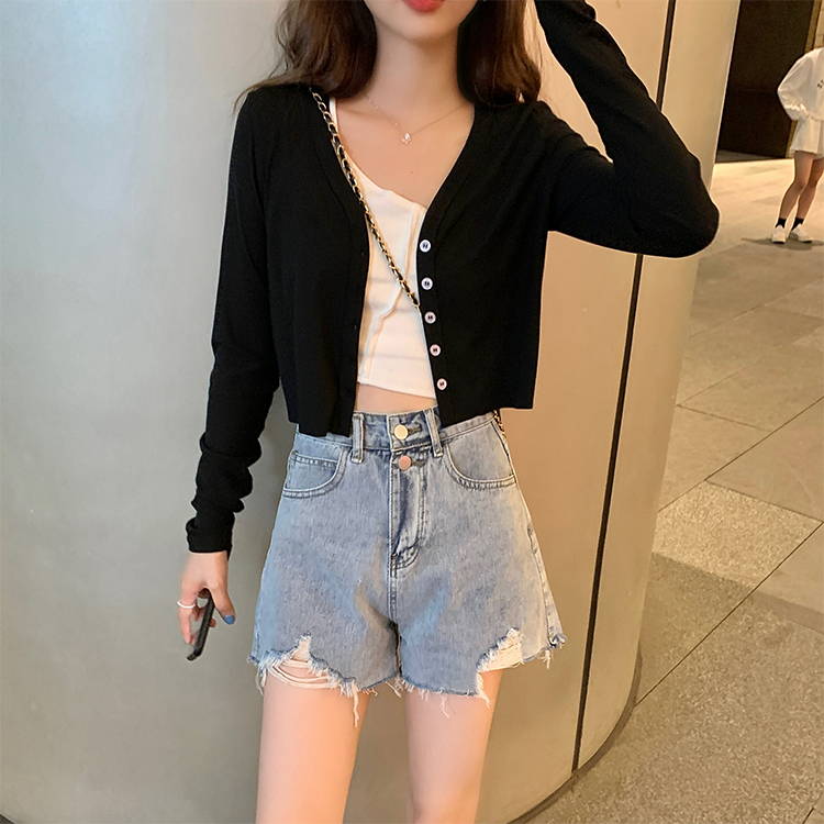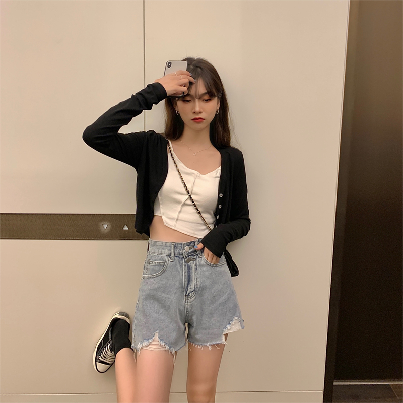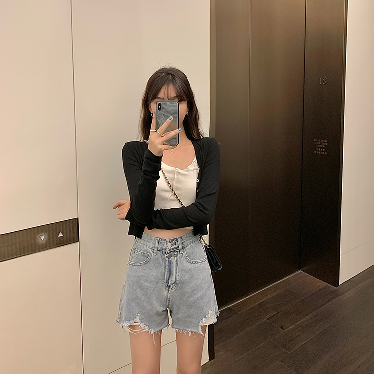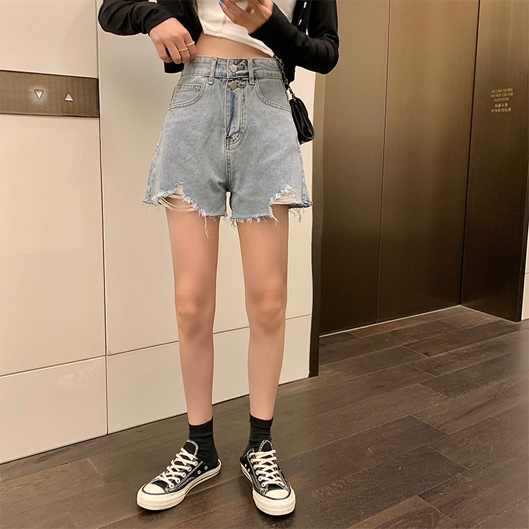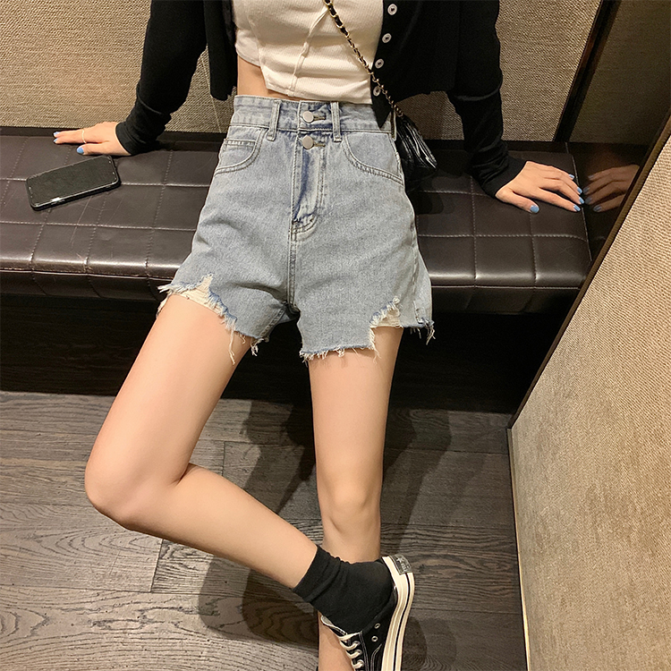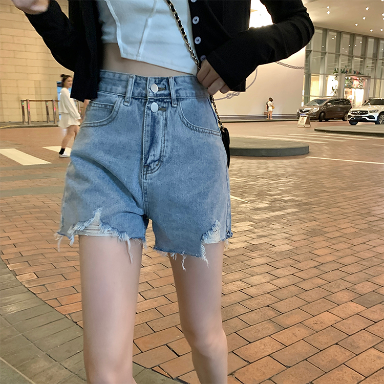 실사 빅 사이즈 여성 의류 거친 가장자리 디자인 워싱 레트로 찢어진 부분 데님 반바지 다용도 슬림해 보이는 와이드 레그 팬츠 핫 바지