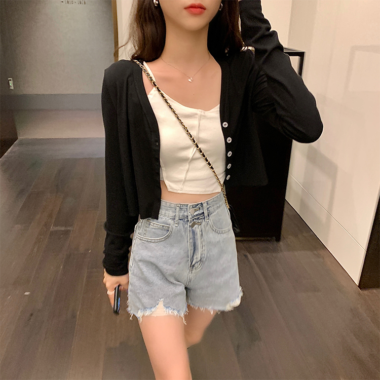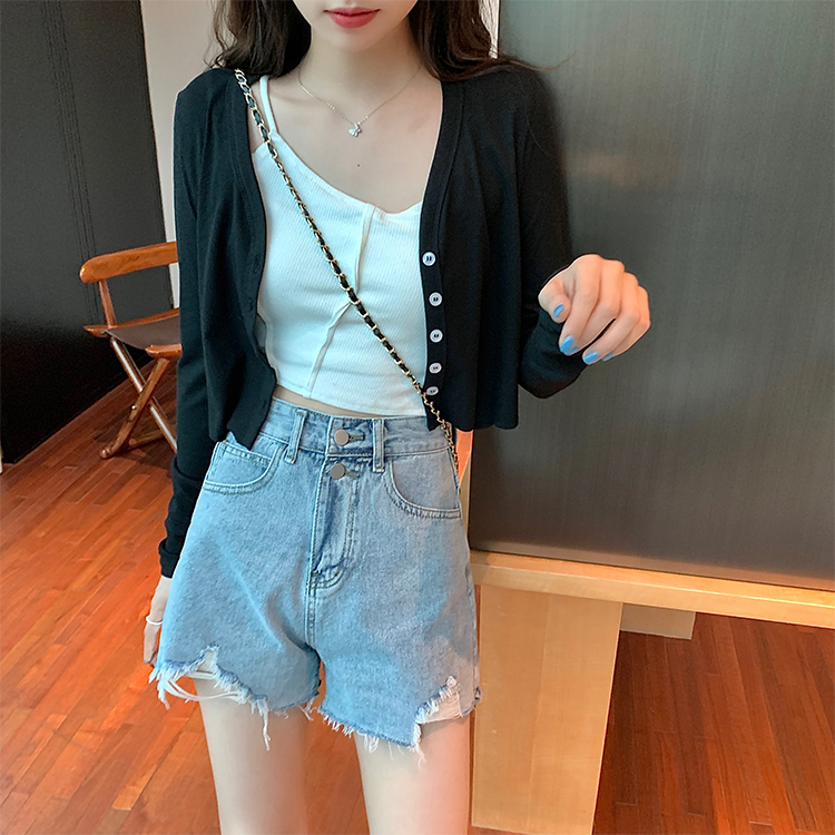 실사 지금 여름 신제품 한국 스타일 스트라이프 니트 스트라이프 맨위 숄 반신 스커트 3종 세트
