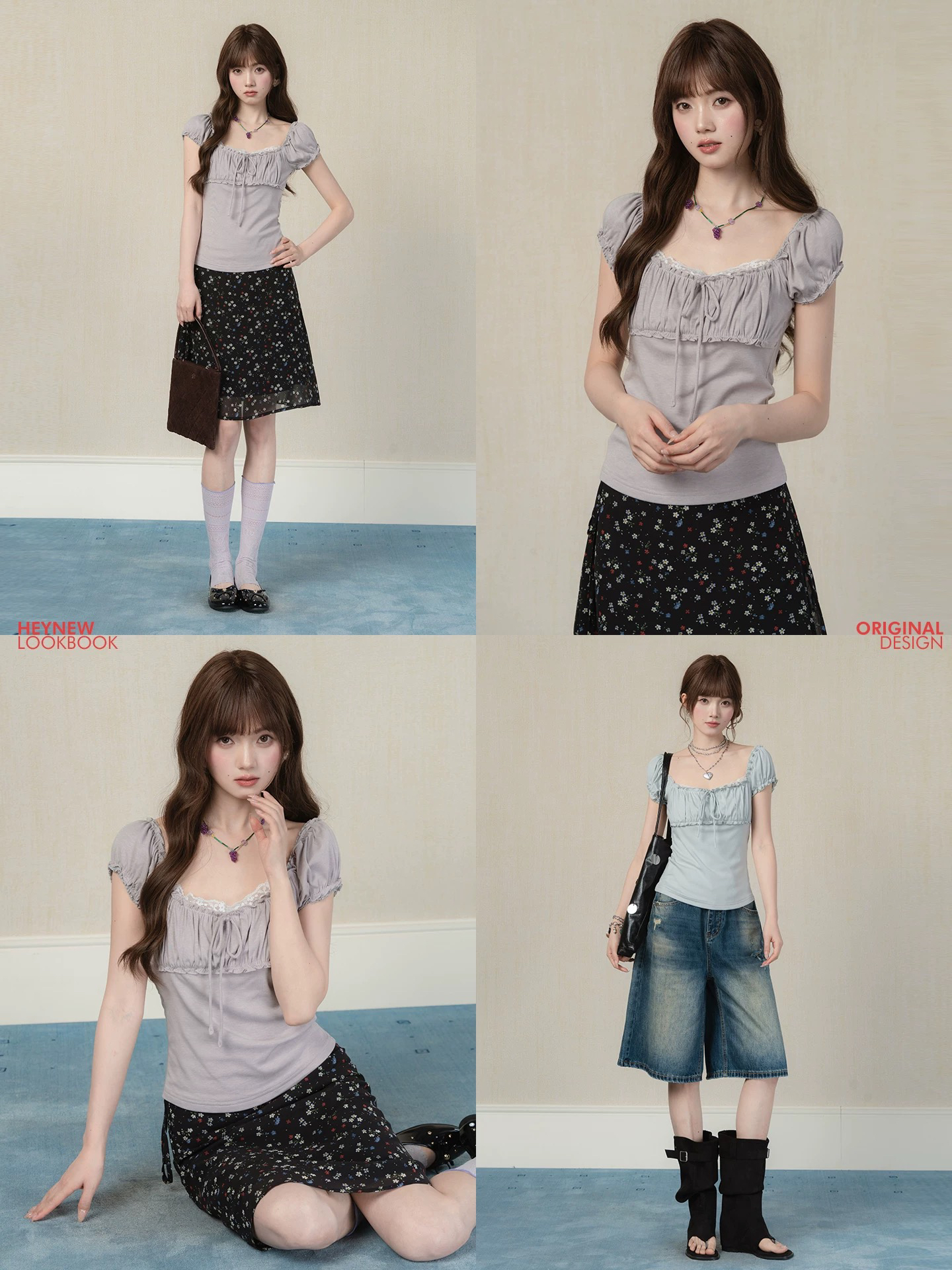 레트로 항구 바람 연령 감소 티셔츠 외국 가스 다용도 꽃 라운드 넥 반팔 10 반 스커트