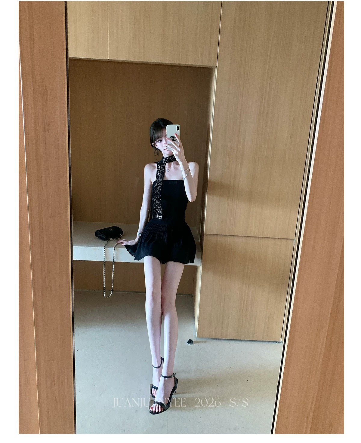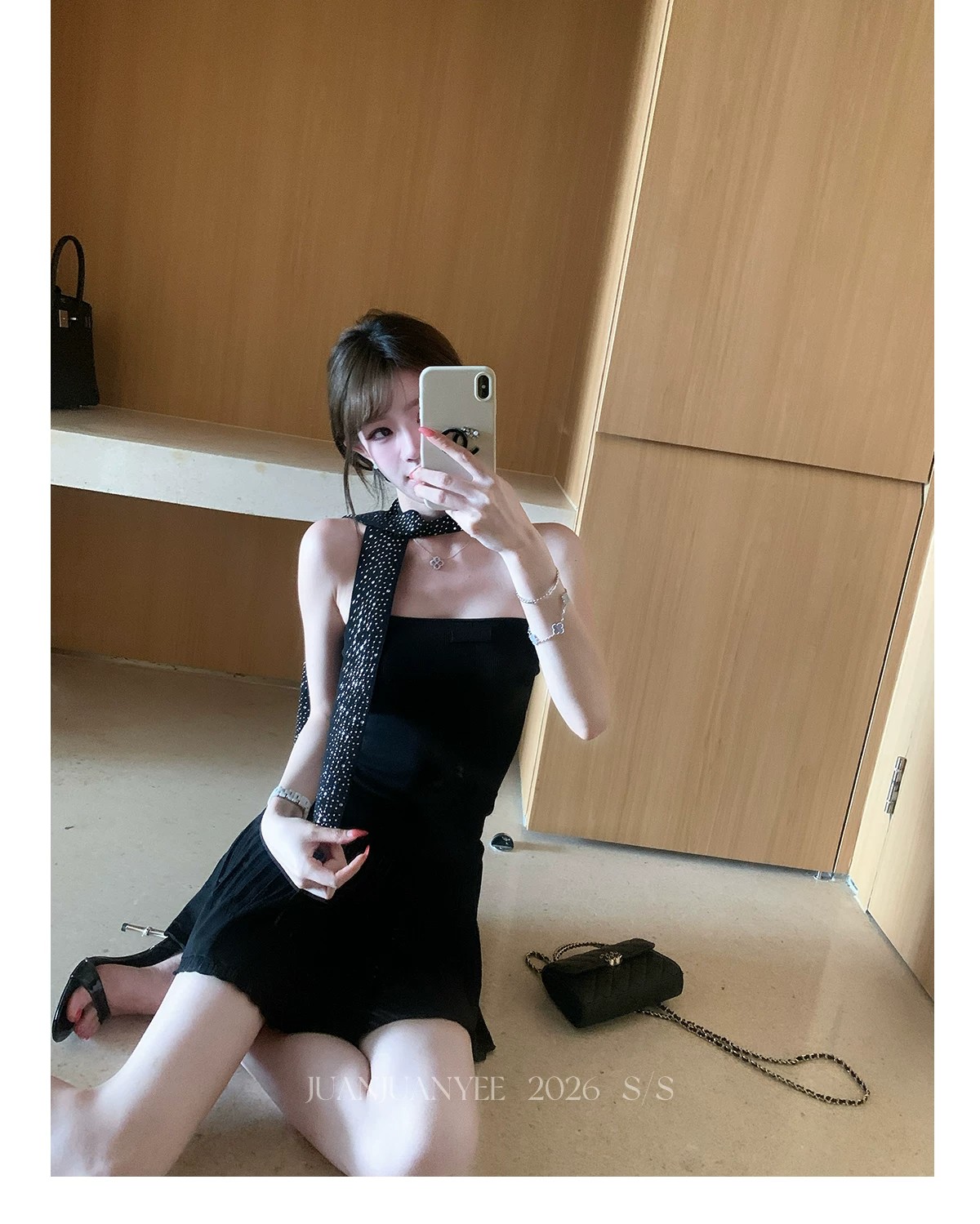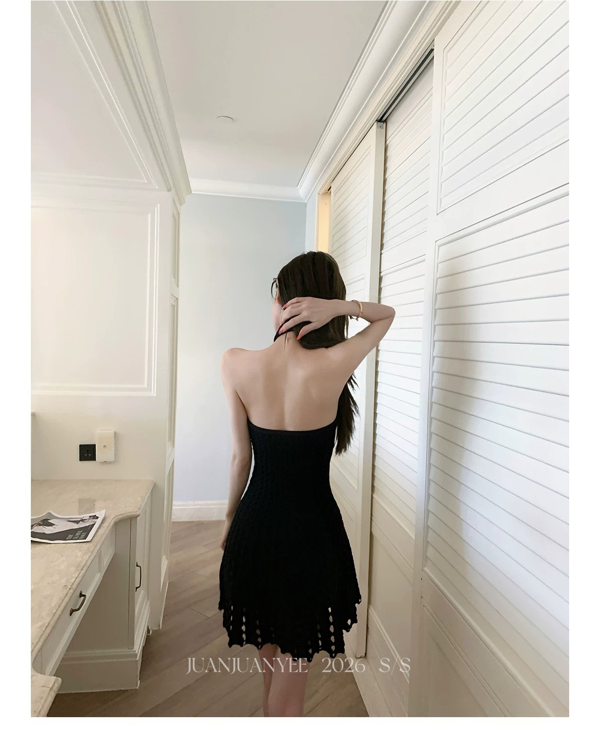 juanjuanyeesimkh 사설 서비스 치마 십자가 비틀림 행침 목 훅 니트 홀로우 아웃 민소매 드레스