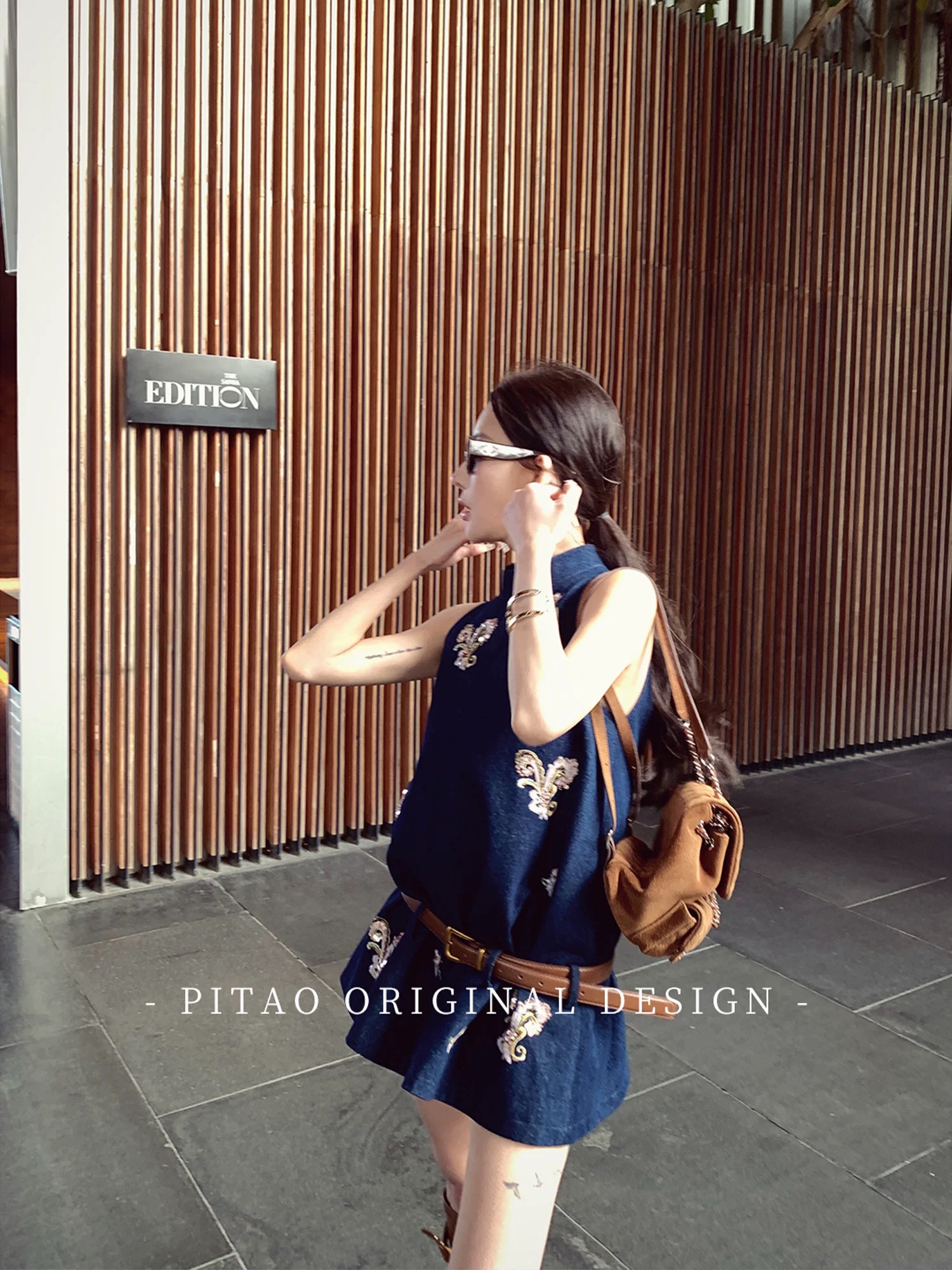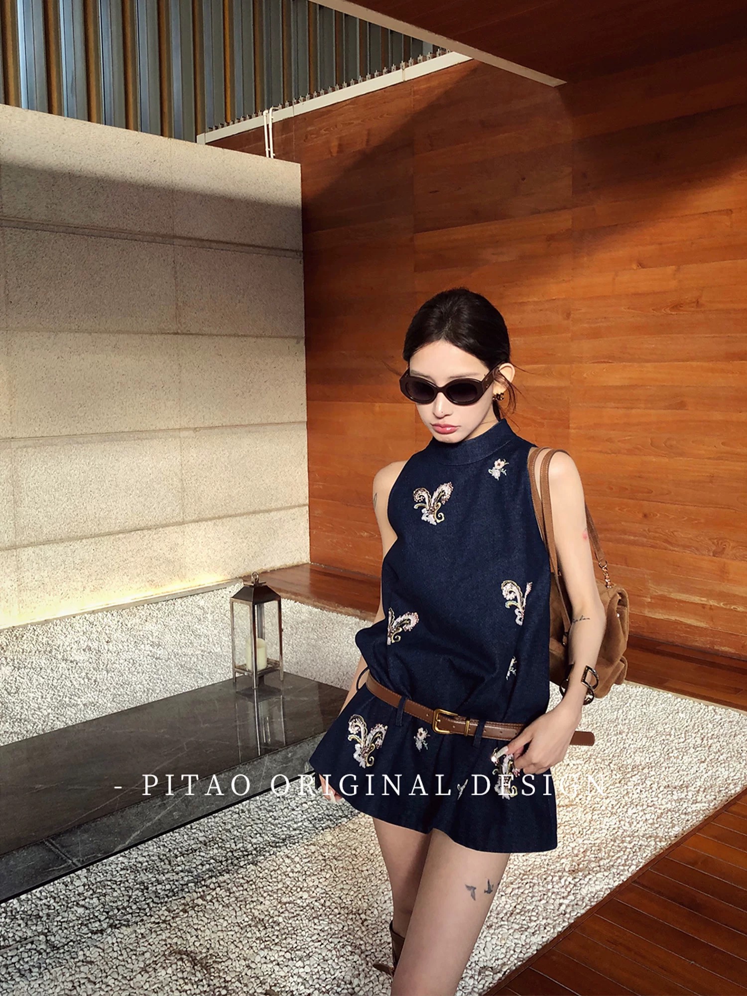 Du 엉덩이 복숭아 오리지널 휴일 마드리드 봄 아모이 중식 국풍 자수 면 소재 데님 민소매 맨위