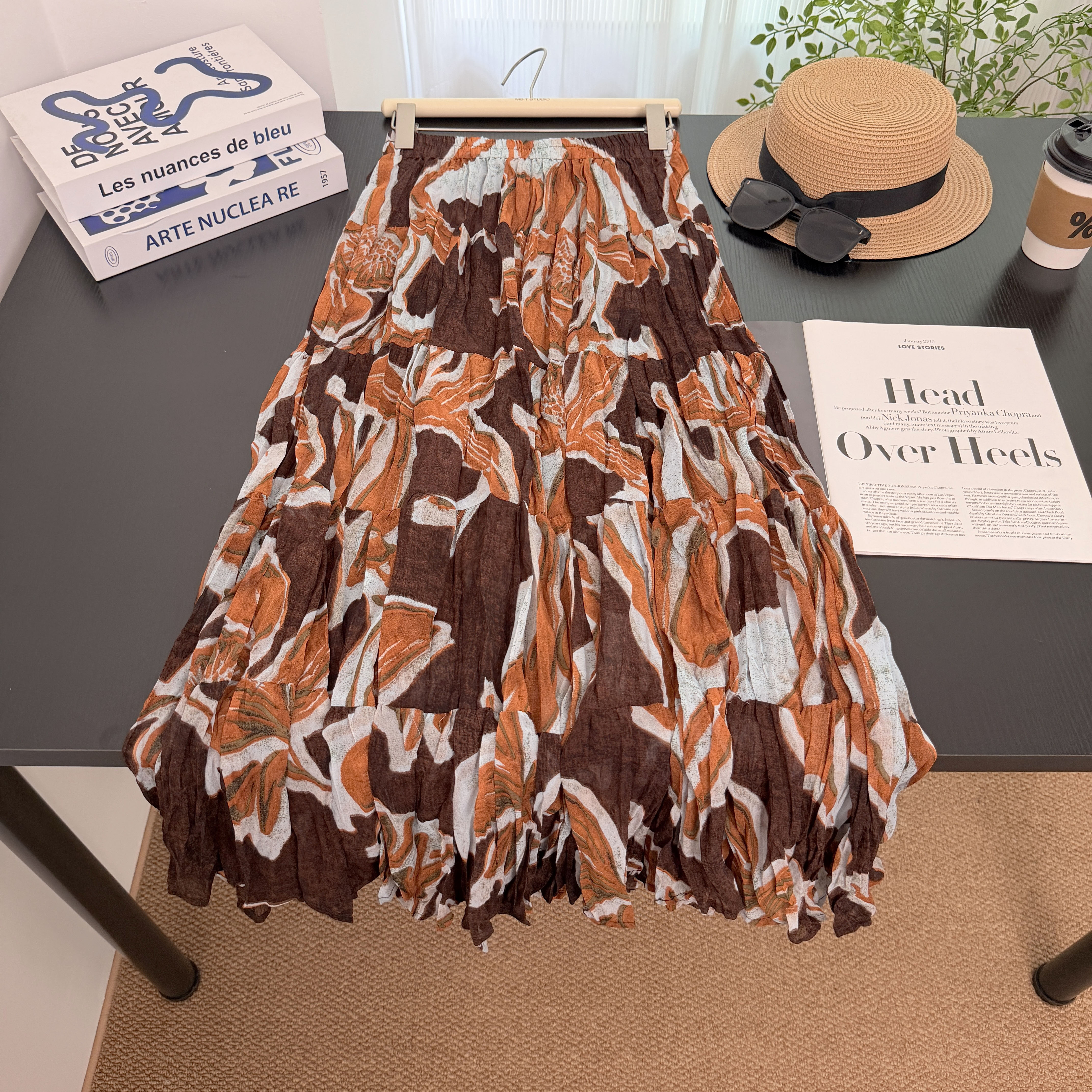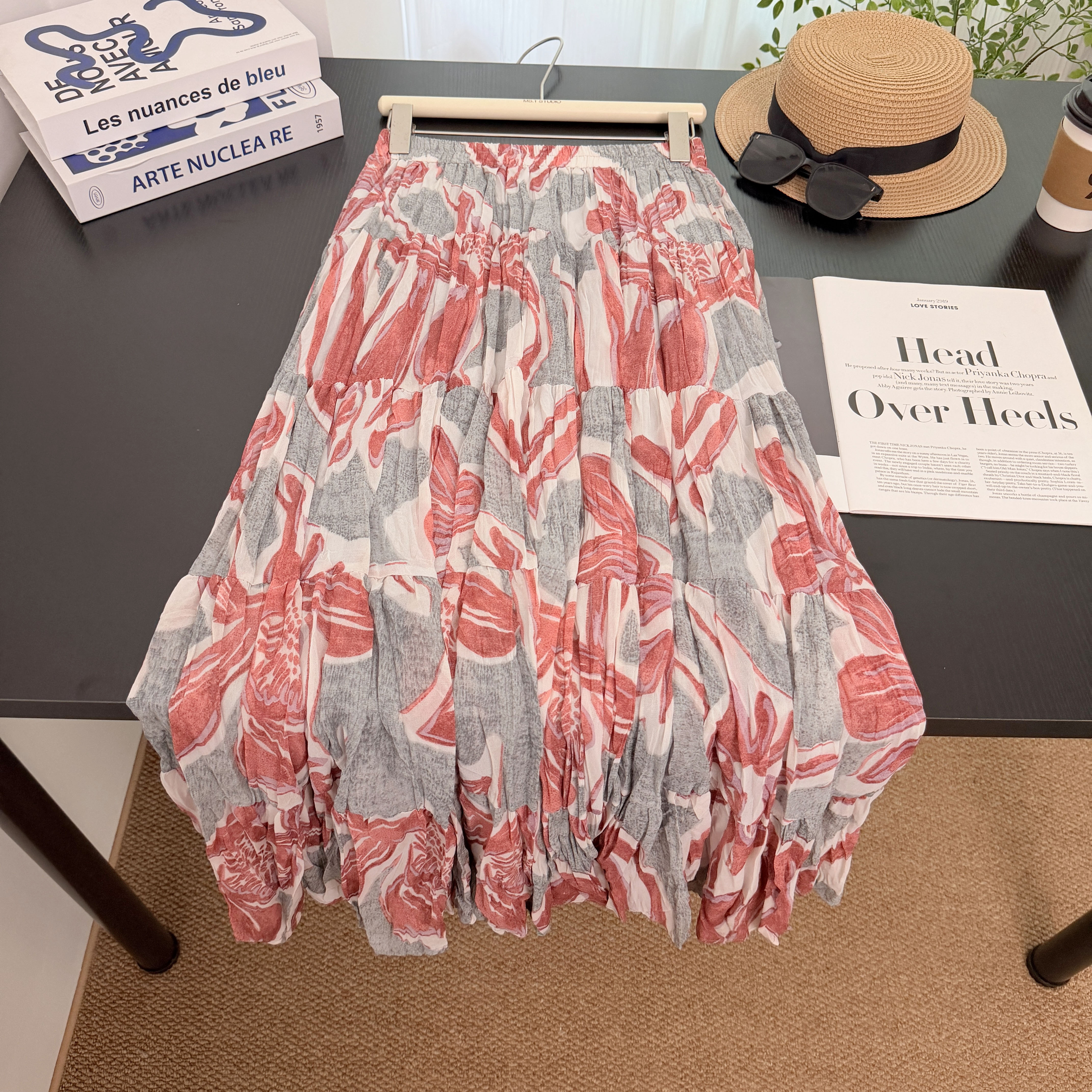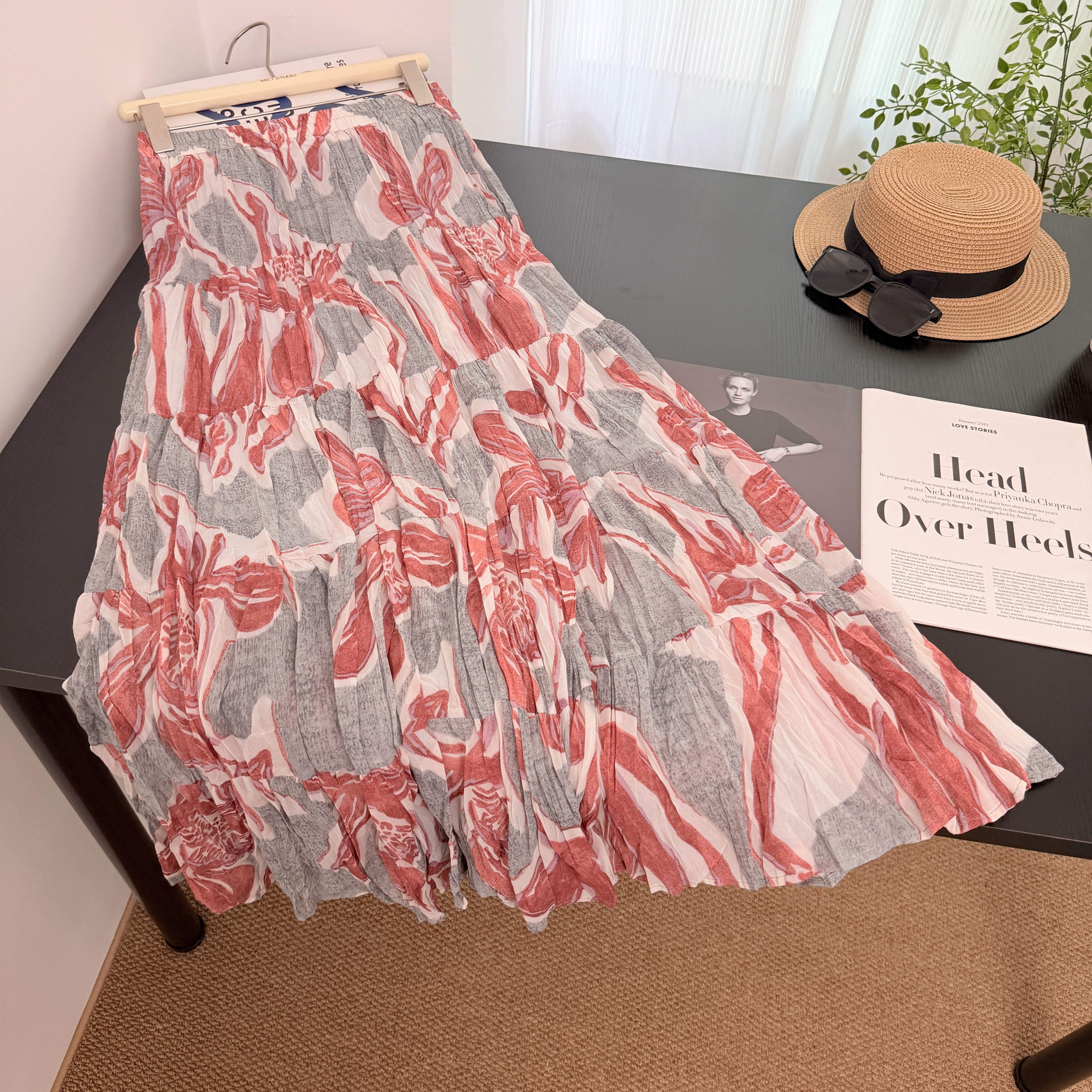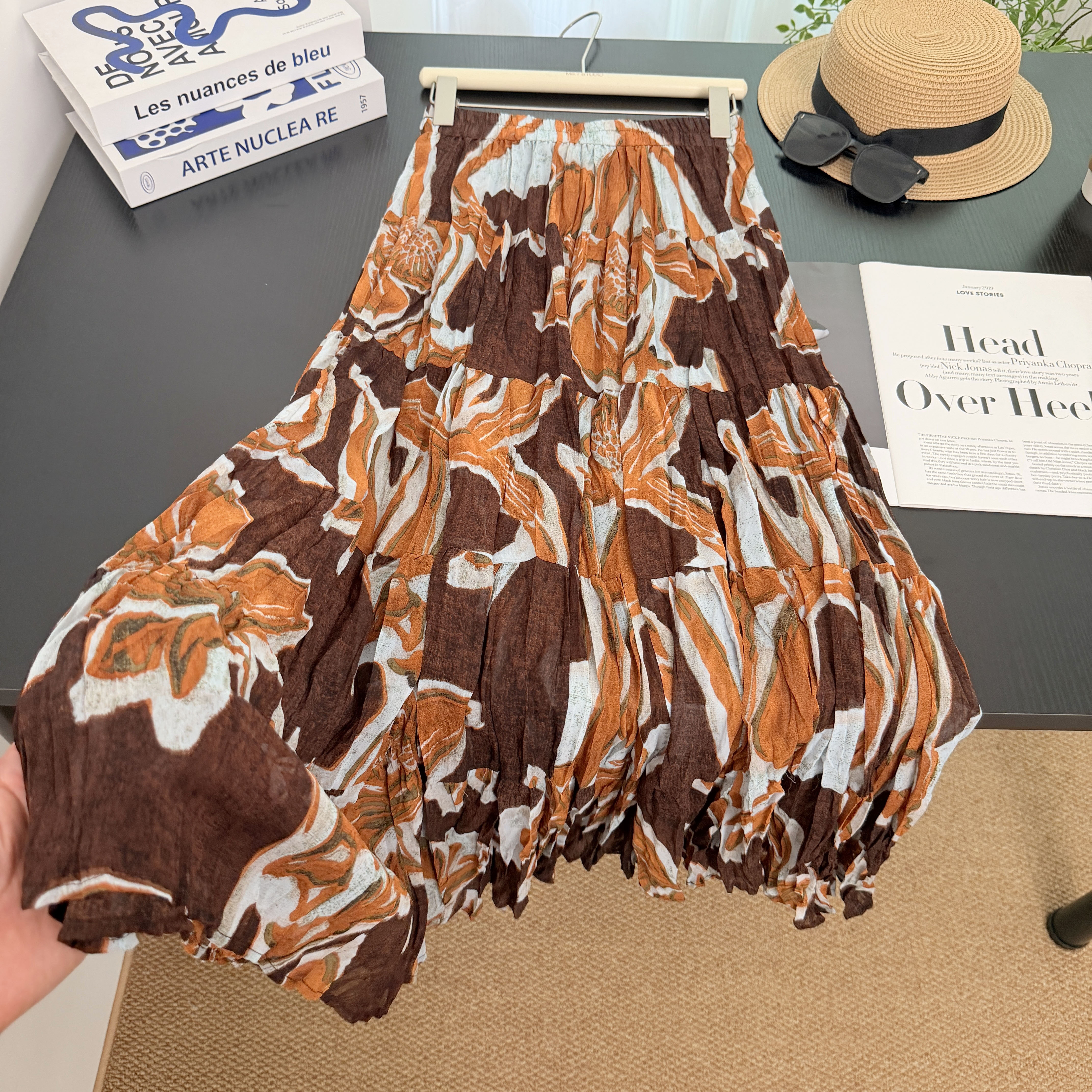 실사 보헤미안 바람 레트로 프린트 A라인 스커트 26 년 여름 새로운 프랑스식 디자인 센스 루즈핏 반신 스커트