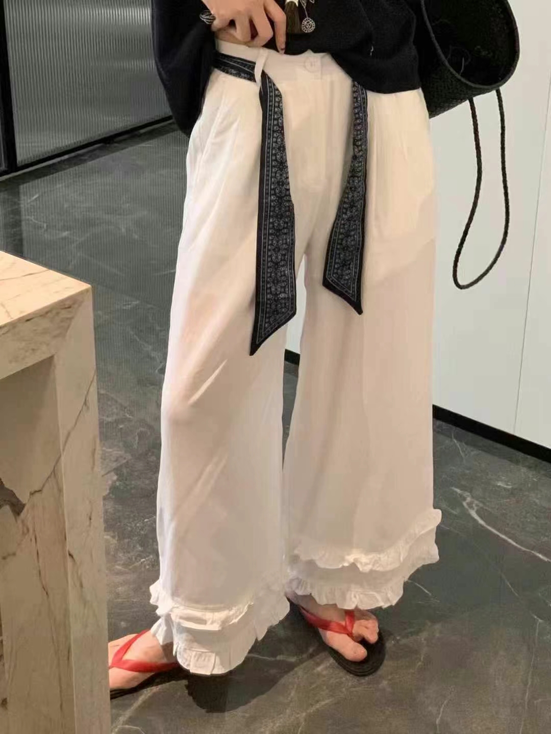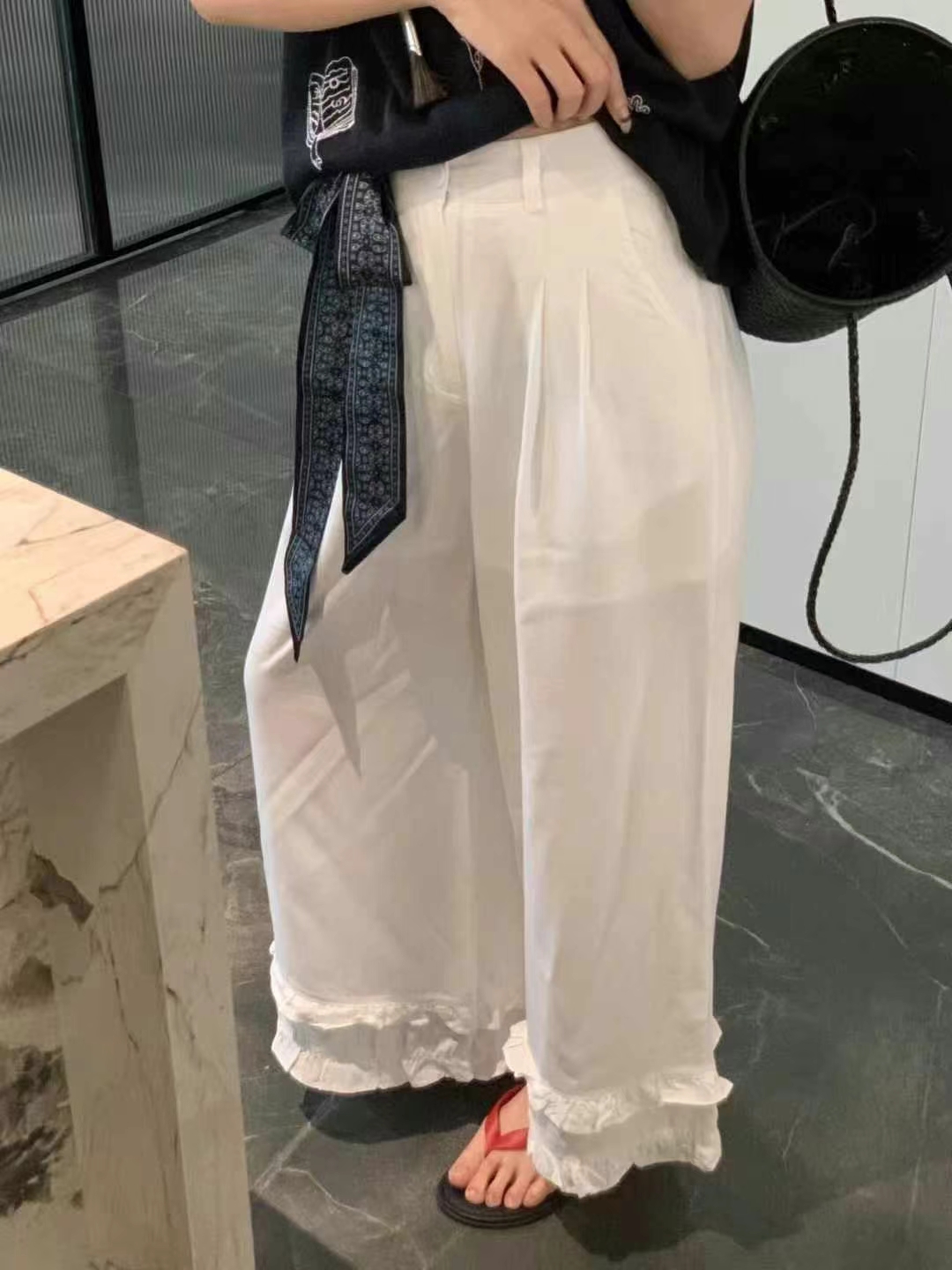 여름 섹션 2026 새로운 프릴 도루 센스 와이드 레그 팬츠 캐주얼 바지 여성