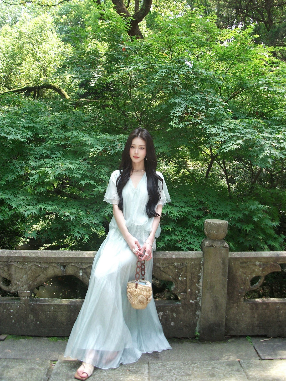 4.3 신제품 westayone 박하 녹색 꽃무늬 여성 드레스 여름 2026 새로운 작은 키 롱 스커트