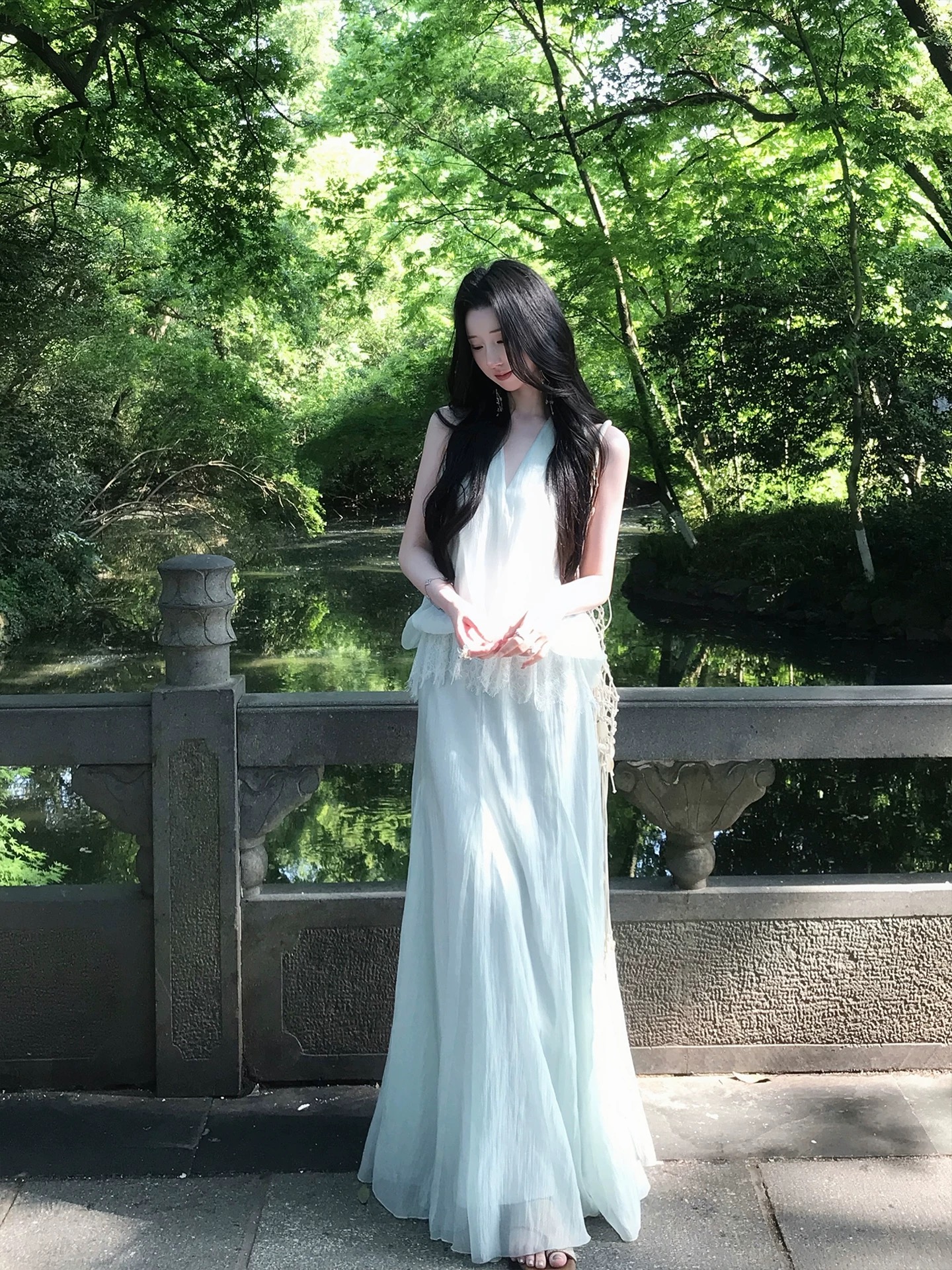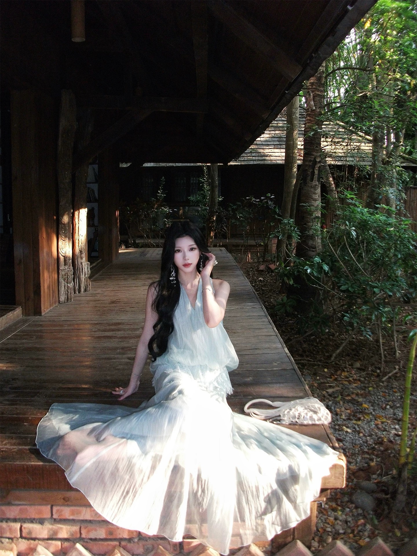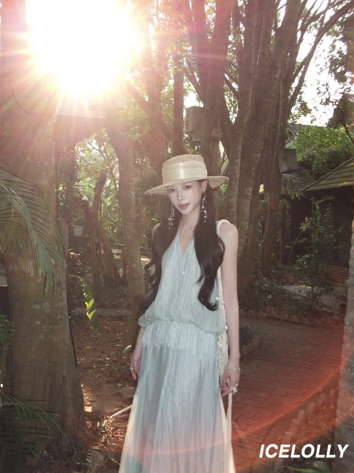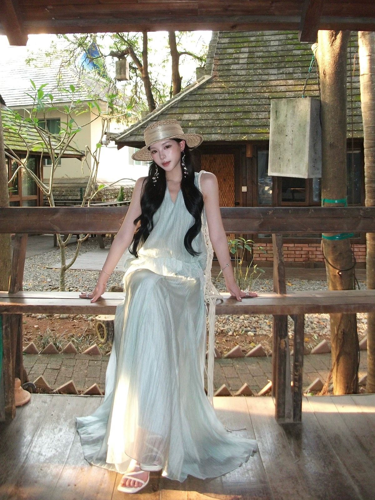 h2an1 studio 丨 맞춤 사쿠라 꽃가루 패치워크 꽃 슬립 드레스 프랑스식 민소매 휴가 롱 스커트